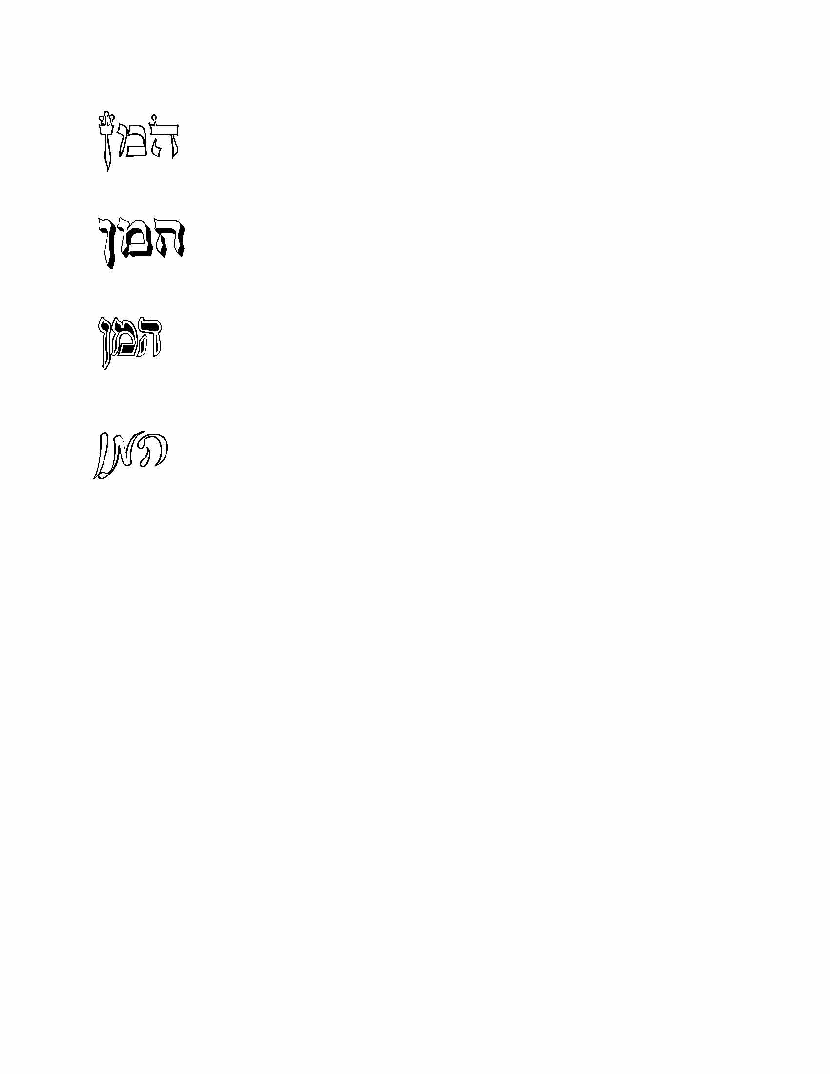 גמרתי לעמד ללקוח מגילת אסתר, והוא רוצה שכל פעם שכתוב המן במגילה שיהיה כתוב באות בלי מילוי, שיראו איפה שצריכים לדפוק בקריאת 'המן'.