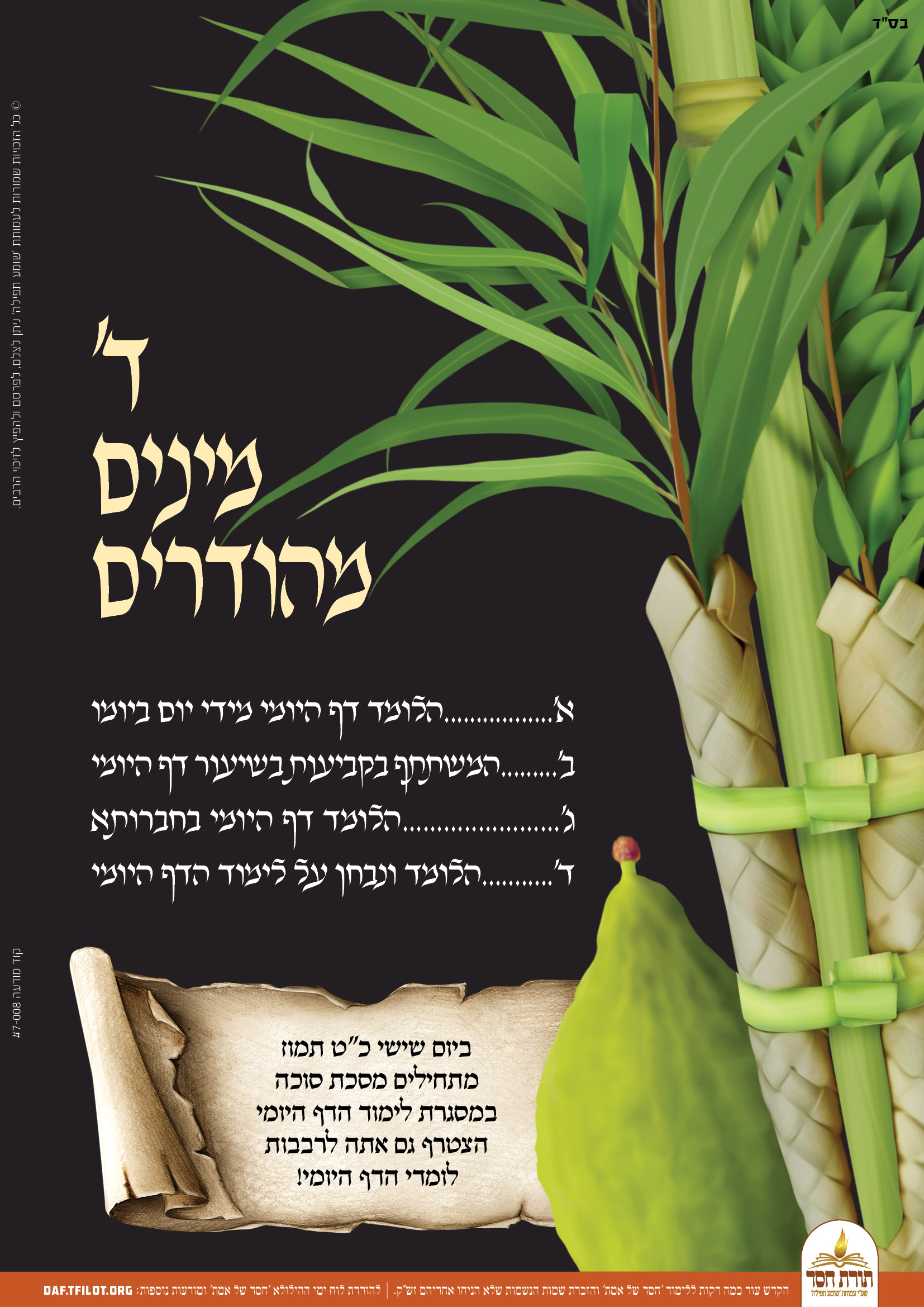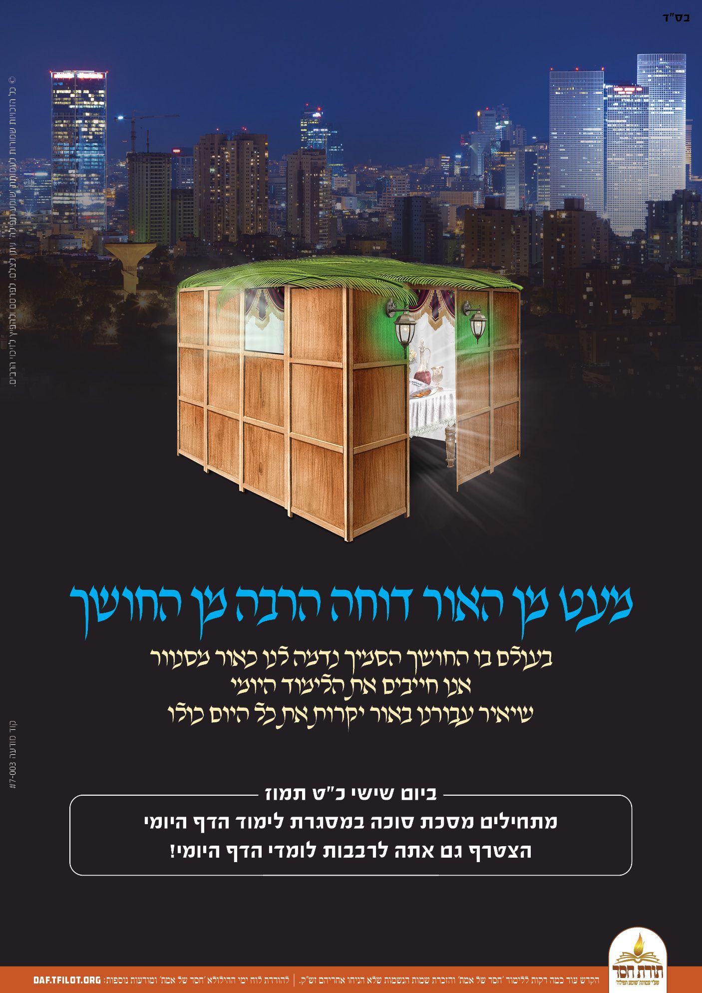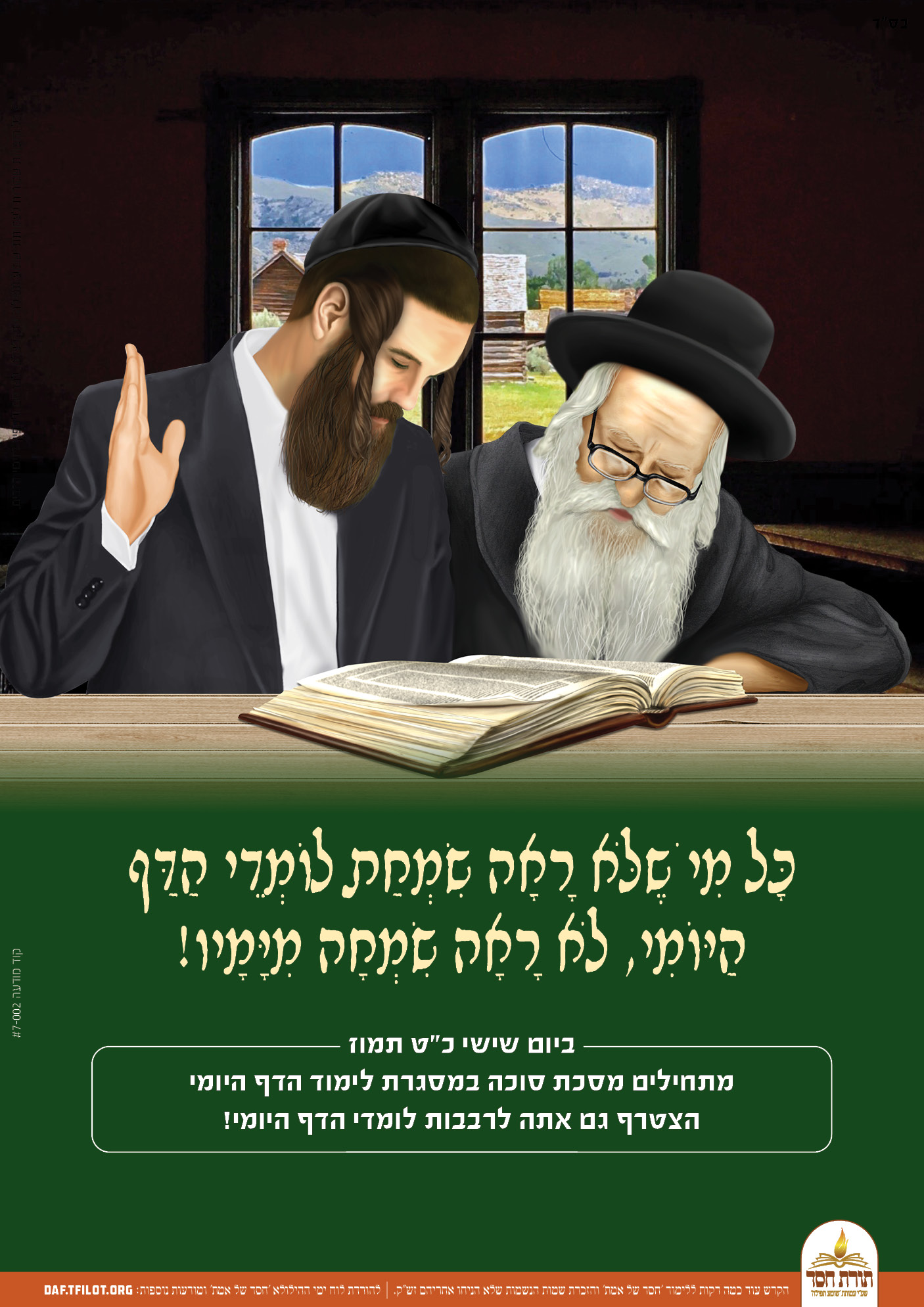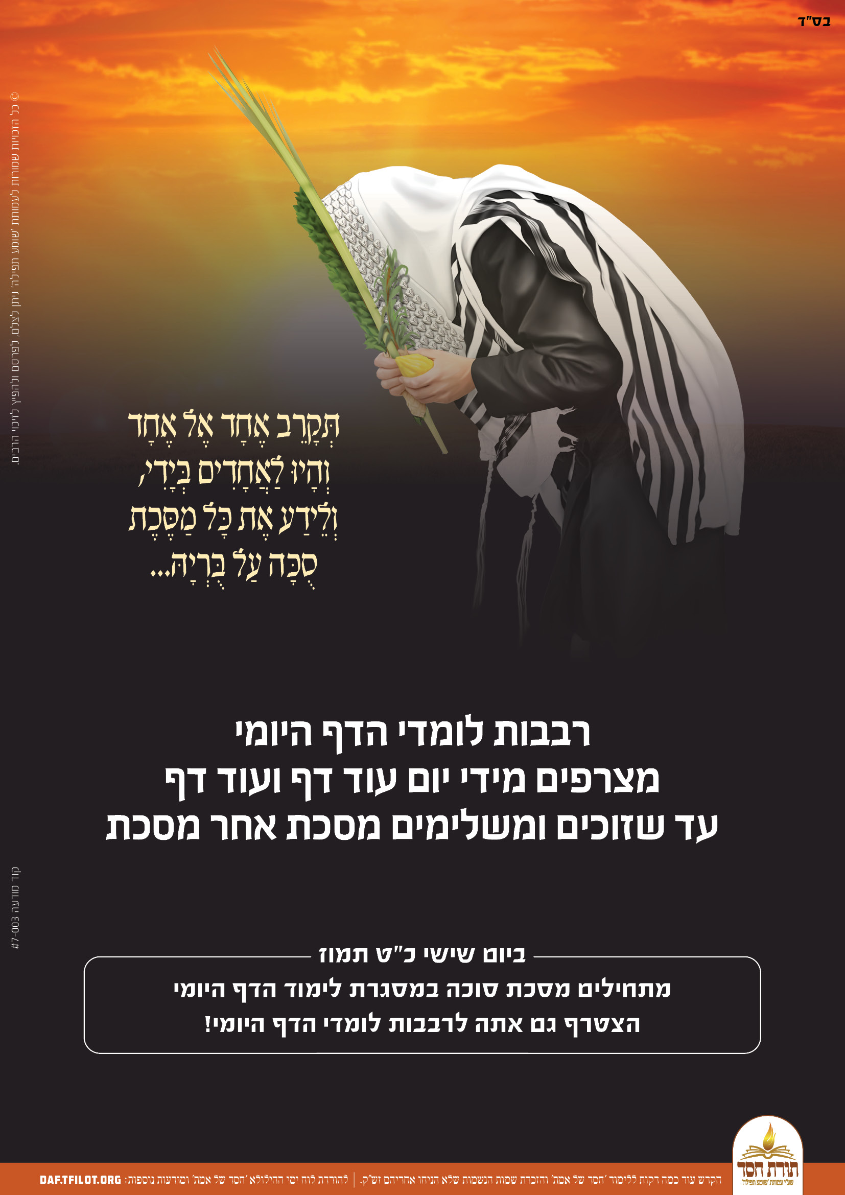 פוסטרים מיוחדים לקראת התחלת לימוד מסכת סוכה, ניתן להפיץ לזיכוי הרבים.