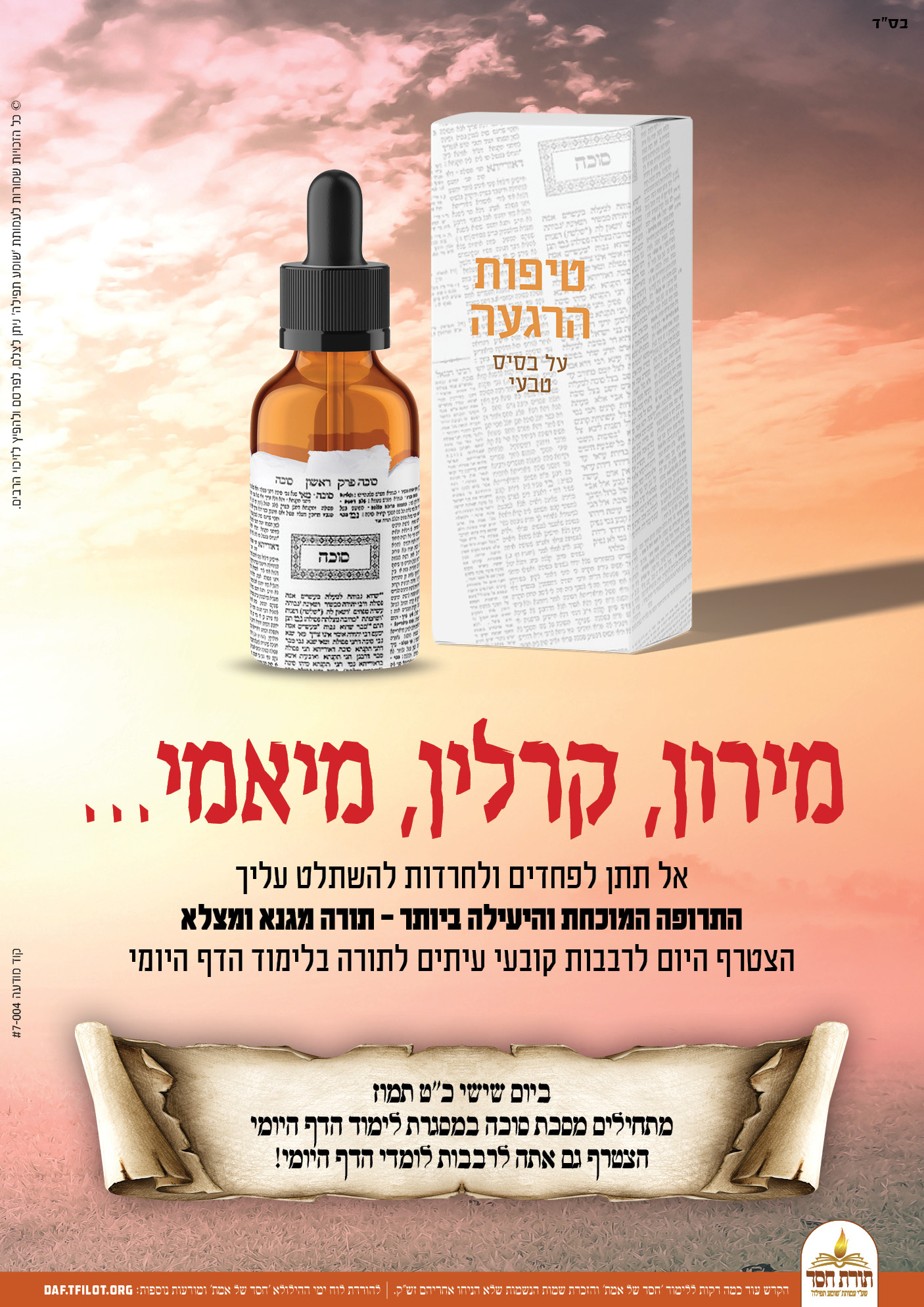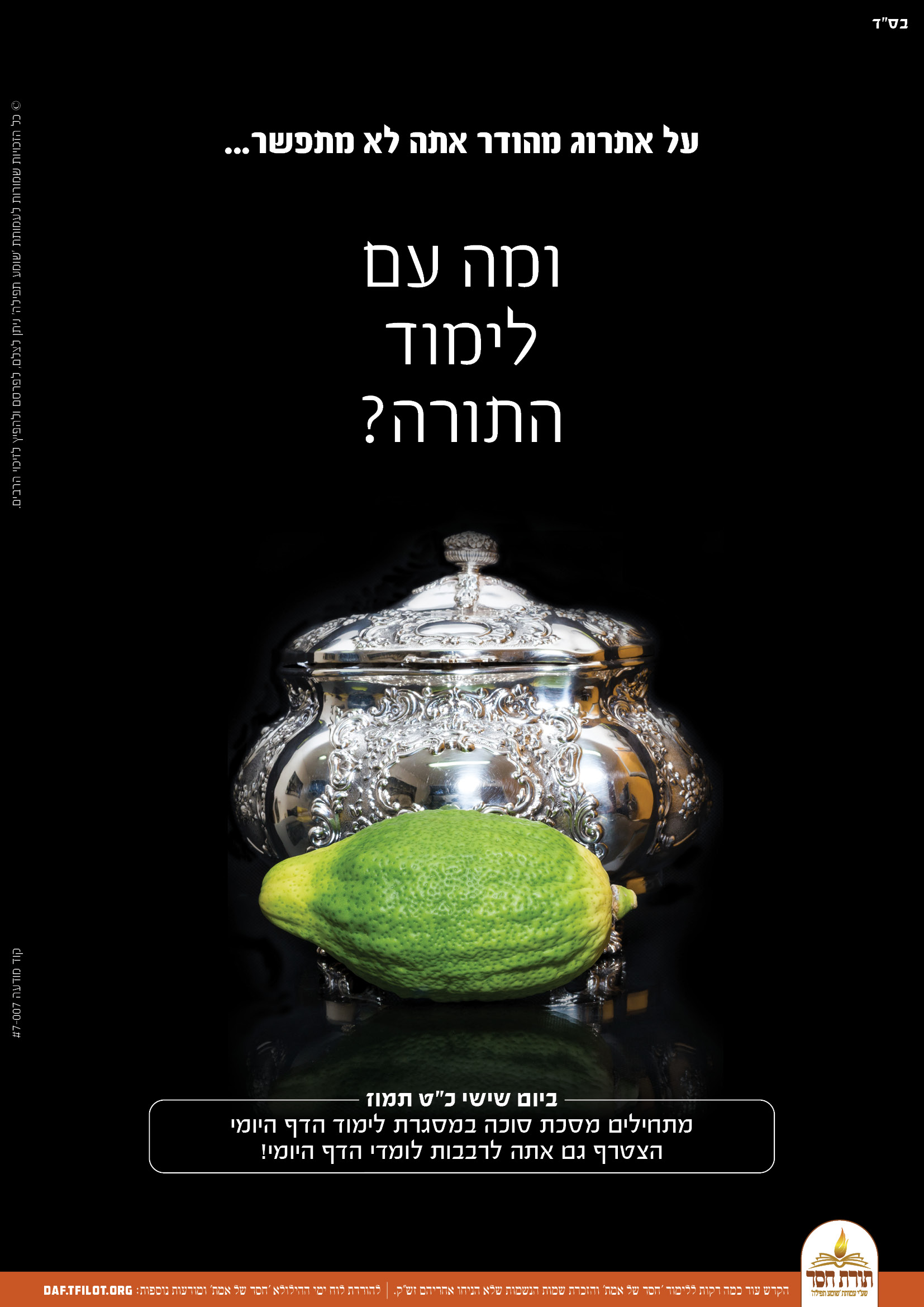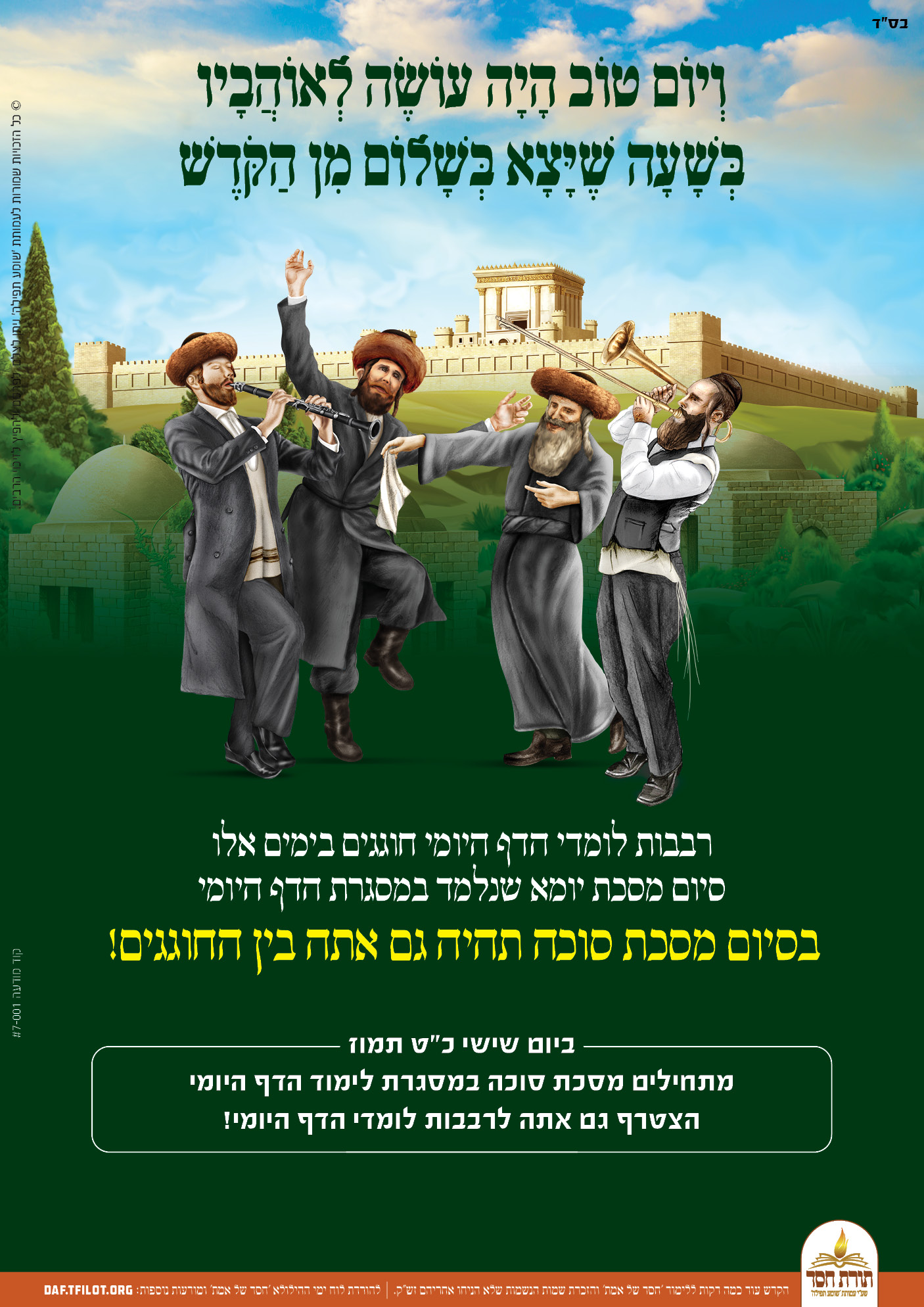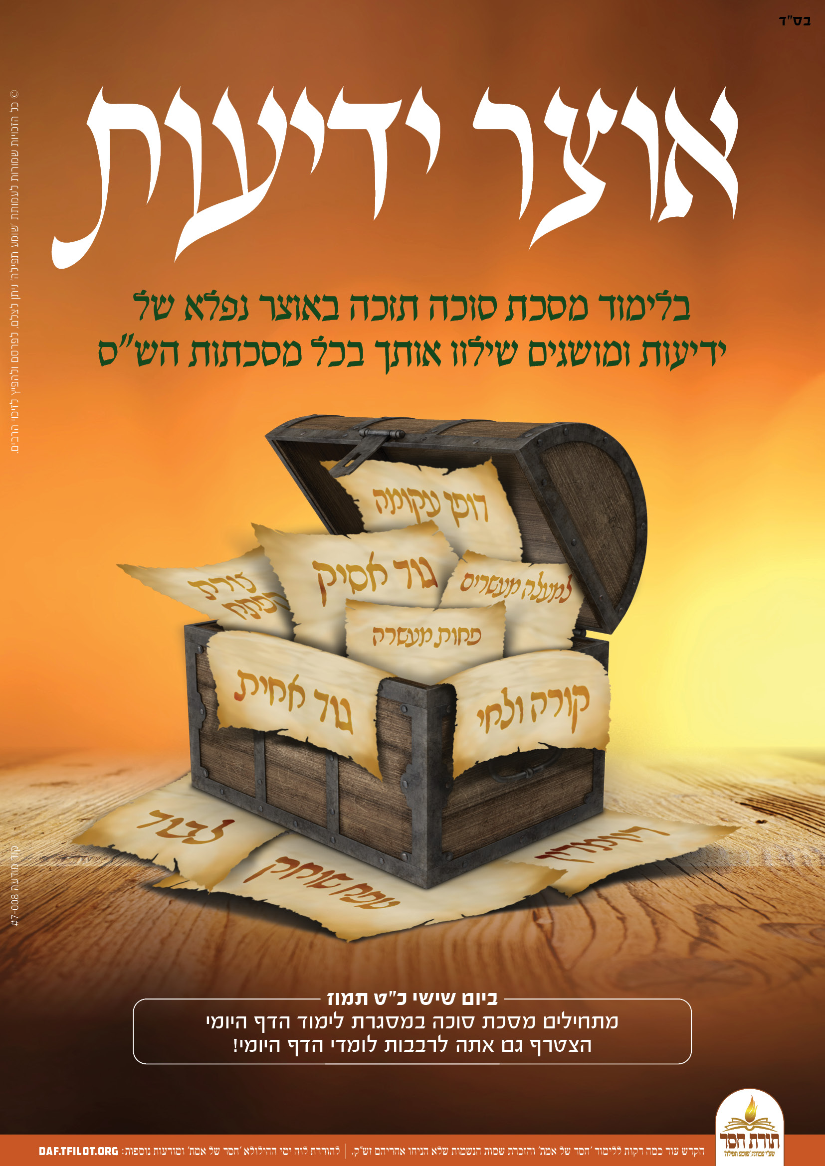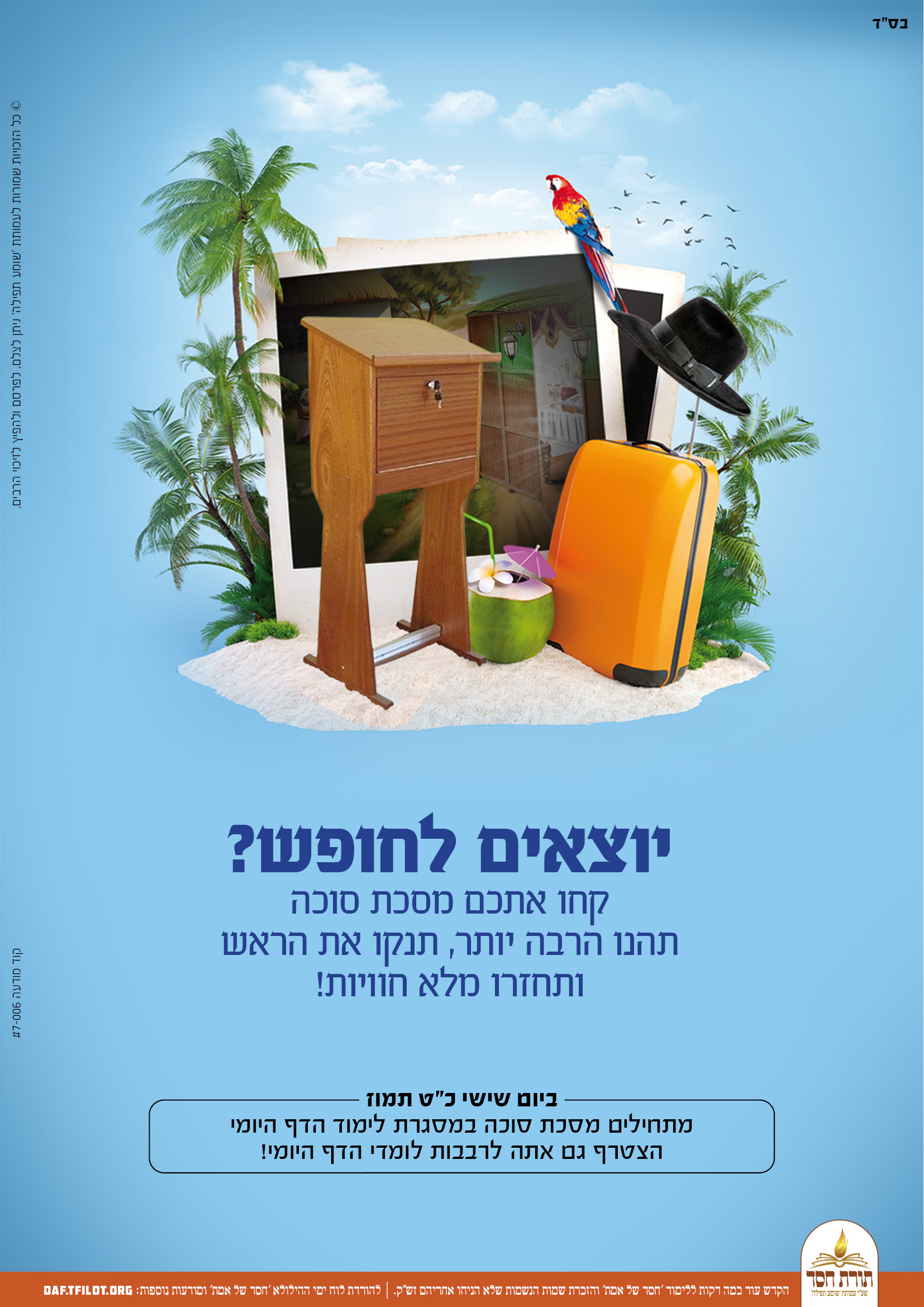 פוסטרים מיוחדים לקראת התחלת לימוד מסכת סוכה, ניתן להפיץ לזיכוי הרבים.