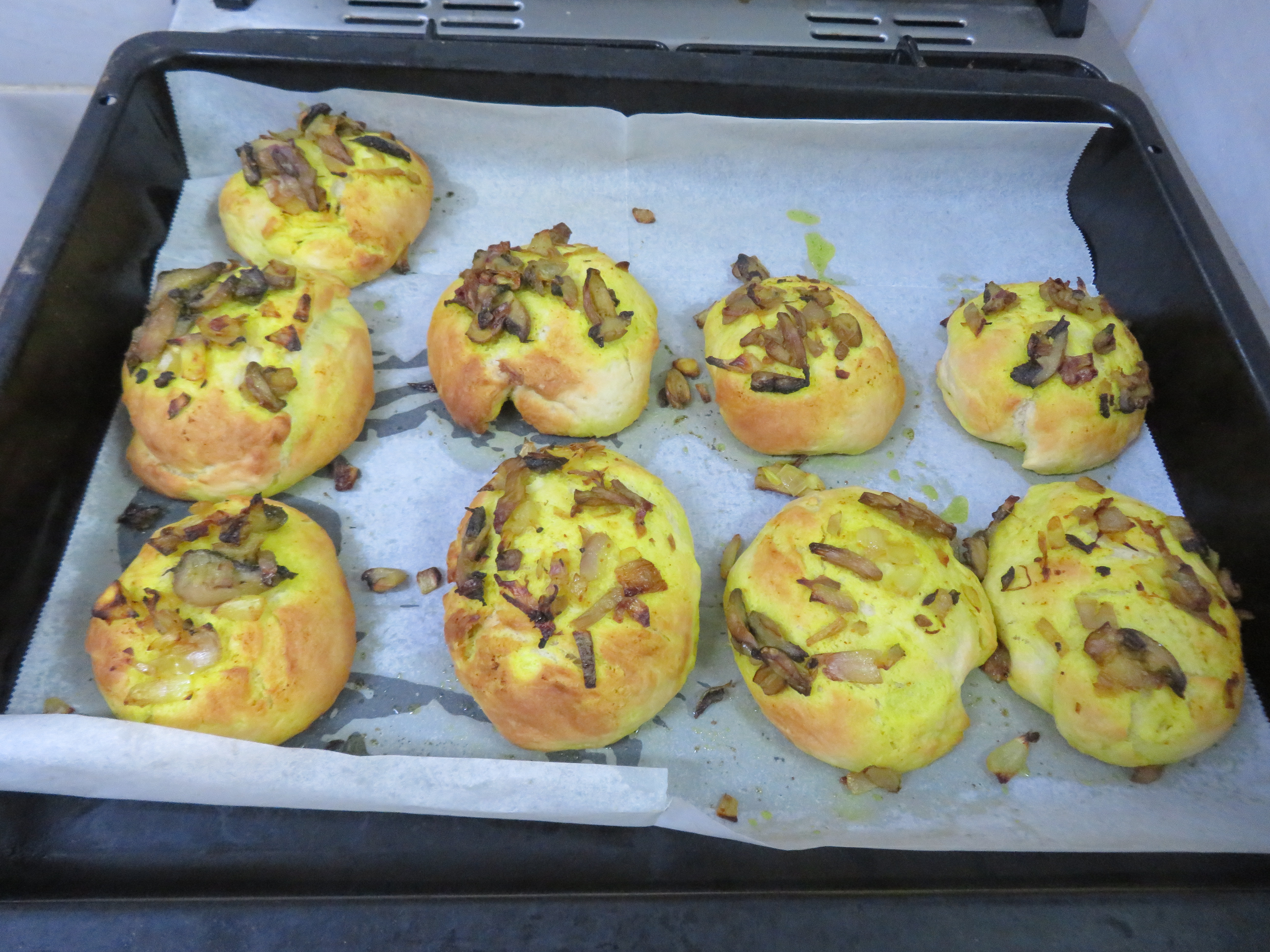 8.בצל יבש (קונים בחנות פיצוחים) ומוסיפים מעט כורכום מלח ושמן - יוצא פוקאצות צהובות .