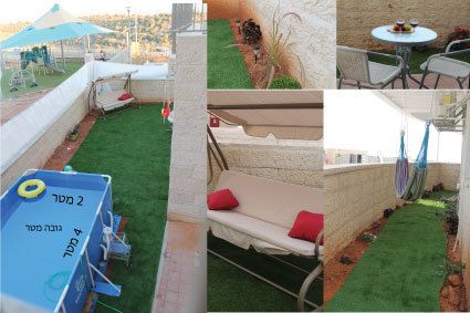 נדנדות, ערסלים ובריכה בגודל 4-2 מטר מוסתרת ומוצנעת ומתאימה גם לנשים (בתמונות זה עוד לפני שהסתרנו..)
