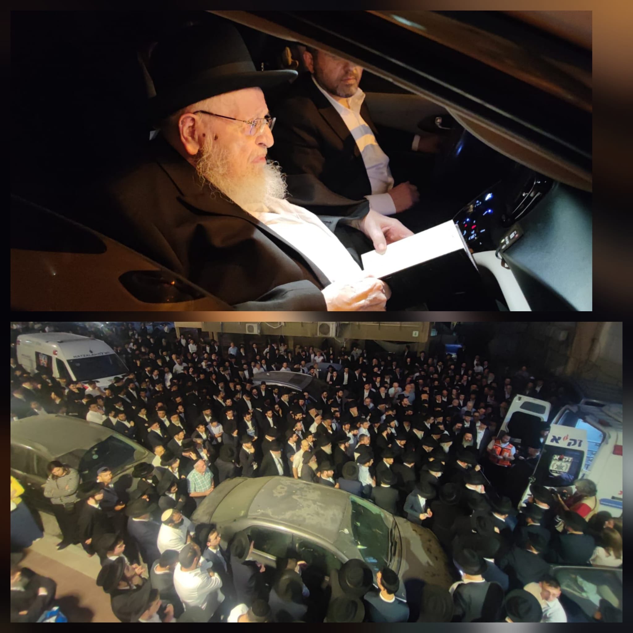 ‏רבינו הגדול מרן ראש הישיבה הגרמ"צ ברגמן בראש מסע הלווית האברך הקדוש הרב ישראל מצנר הי"ד כעת בשכונת רמת אהרן בבני ברק (צילום: שוקי לרר)