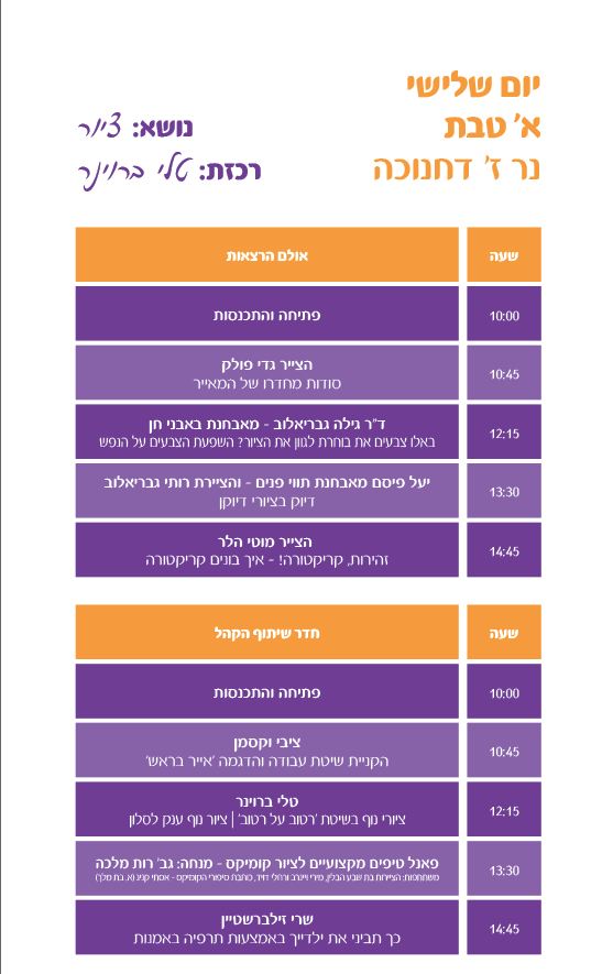 ההרצאות חולקו ל-3 ימים לפי נושאים: כתיבה, אומנות וציור. מחר יהיה החלק של הציור.