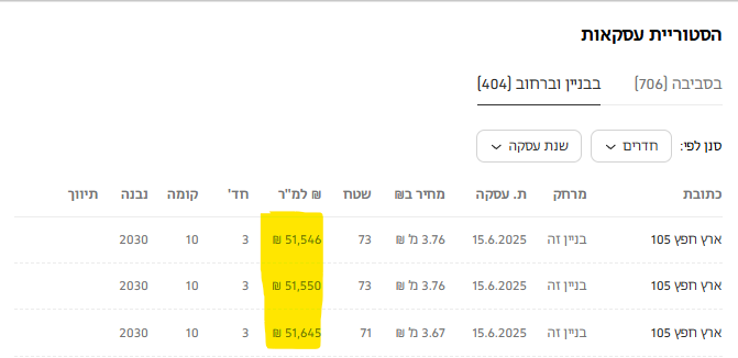 מחירי עסקאות שנעשו - 51k למטר (ואפי' יותר)