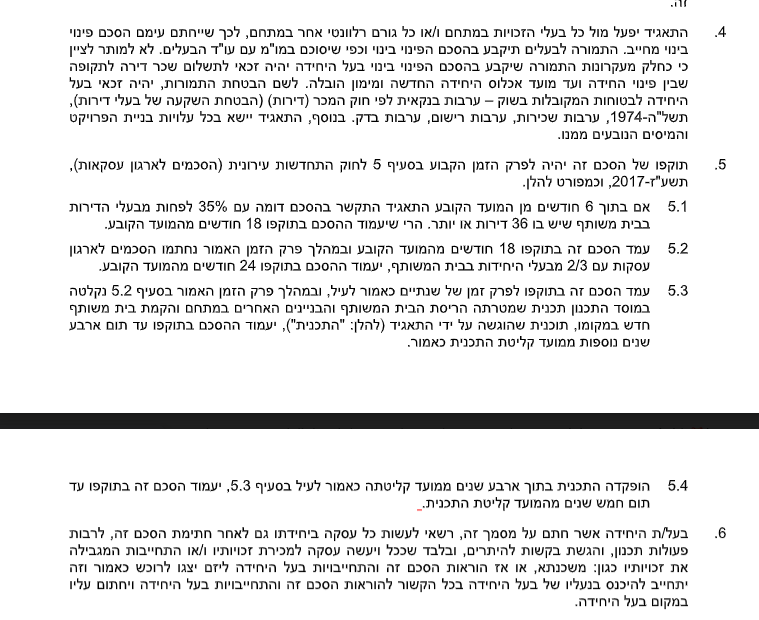 לפי המסמך זה לא 18 חודשים אלא הרבה יותר 18 חודשים להחתמת שליש מכאן השנים הולכות ותופחות לפי החישוב שלי הם מחייבים בערך לעשור ואני לא רואה התחייבות מצידם לפחות זמן.עדיף לא לחתום לפני שמתייעצים עם עו"ד.