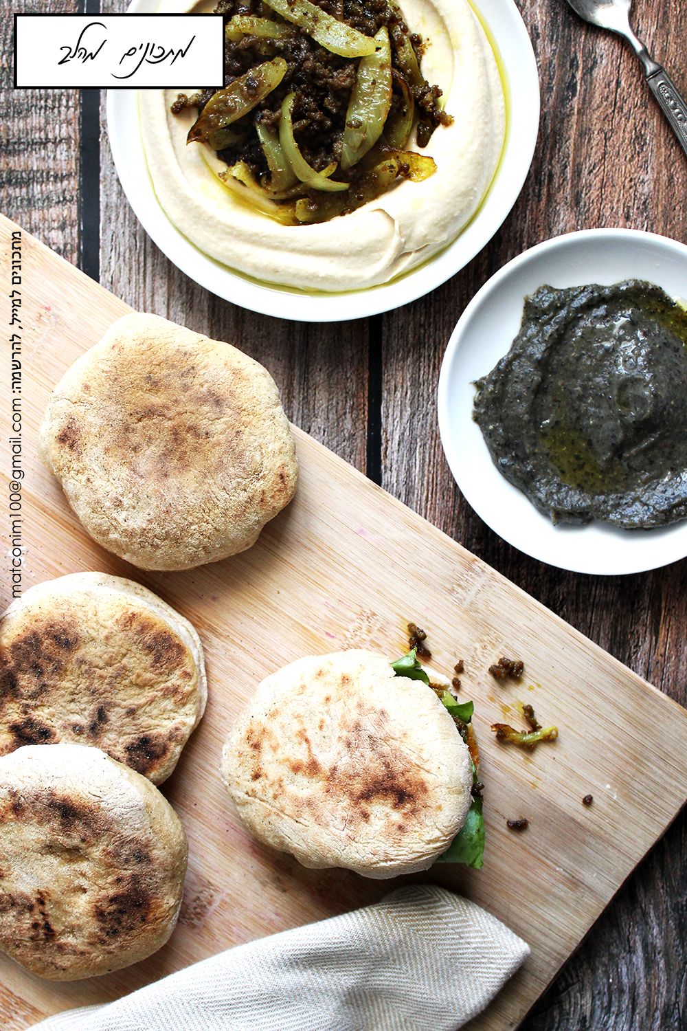 אגב, את הפיתות האלו הגשתי עם מטבל חציל שחור מעושן וחרדל דיז'ון ובשר טחון עם חוויג' ופטריות על מצע חומוס אם תרצינה מתכון - בכייף.
