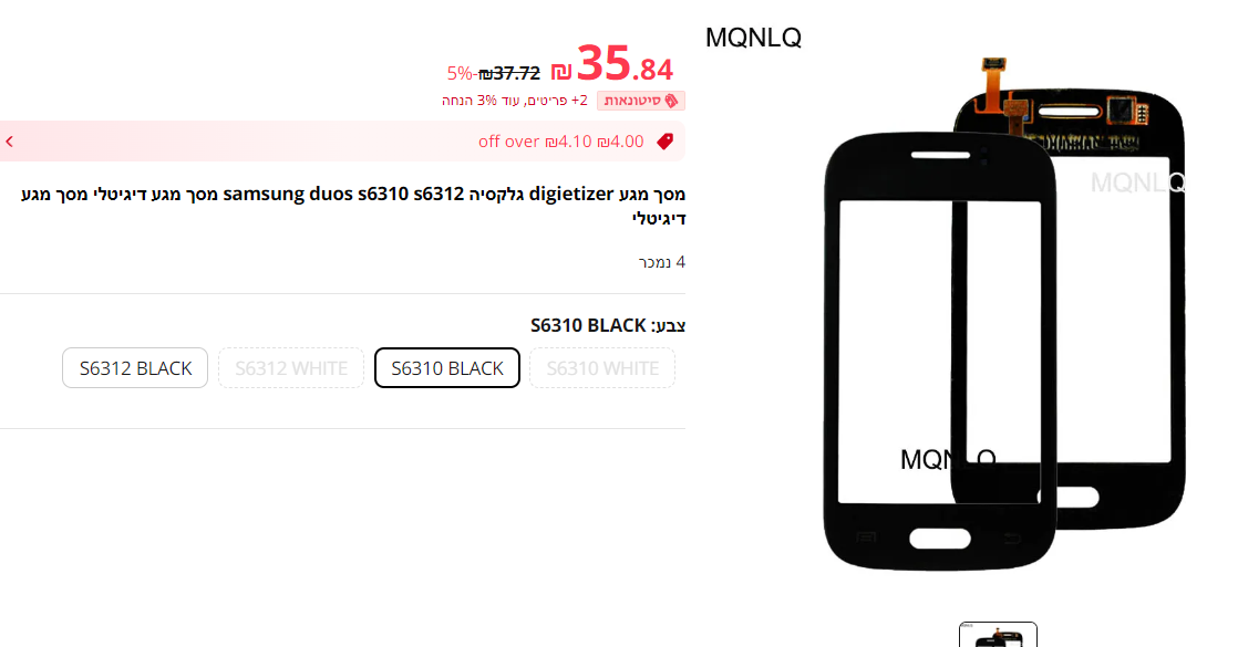 אני אעלה בהמשך קישור מומלץ מנסיון מאליאקספרס, מגיע תוך שבוע +