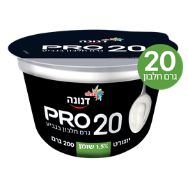 1 גביע יוגורט דנונה פרו טבעי 200 גרם, 20 גרם חלבון