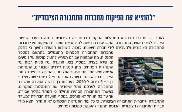 תח"צ פקחי התחבורה ציבורית - הזדמנות חד פעמית להשפיע!
