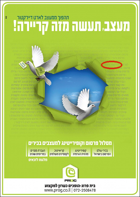 ראיתם את הפרסום של פרוג עם היונים.? ראיתם את המילים: ׳מה קשור היונים׳ מסתתרות שם?