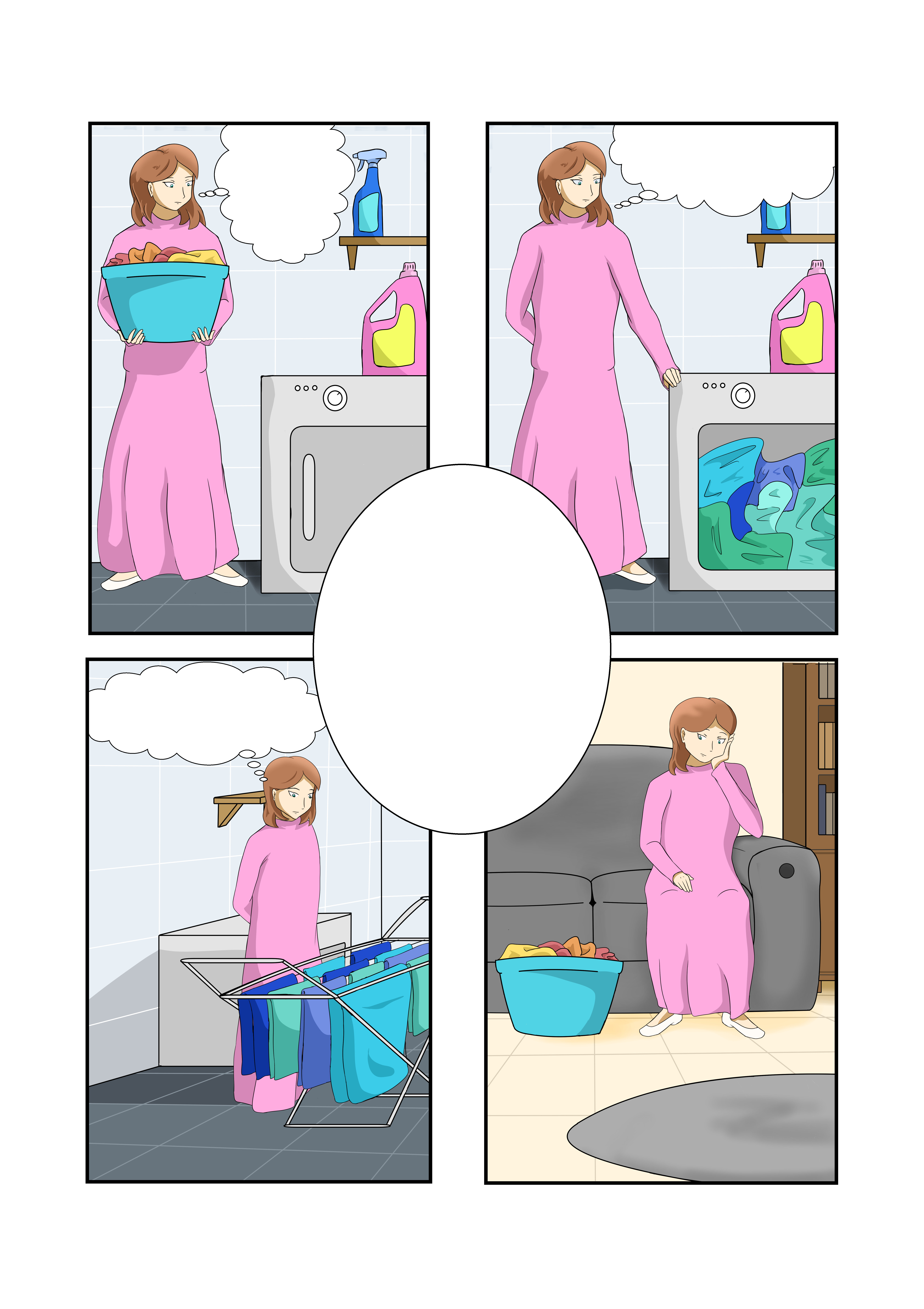 שמתי לב שחלק מהדמויות הם בפרופורציות אמיתיות - לפי כל כללי הציור הרגילים, וחלקן - דמויות קומיות שהראש גדול ביחס לגוף. זה בלט לי מאד בריבוע של הנערה שמחליפה מצעים.