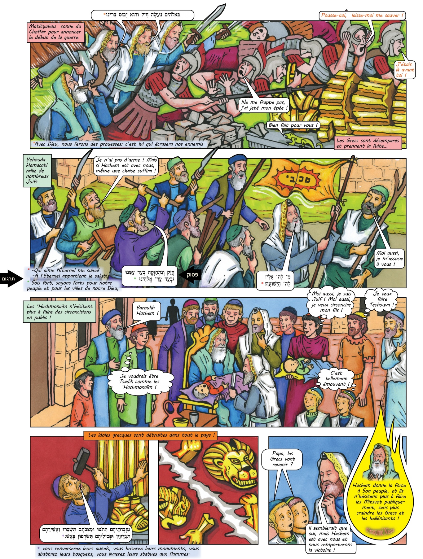 הספר מיכה והורקנוס נלחמים באנטיוכוס על חנוכה בתרגום מעברית לצרפתית