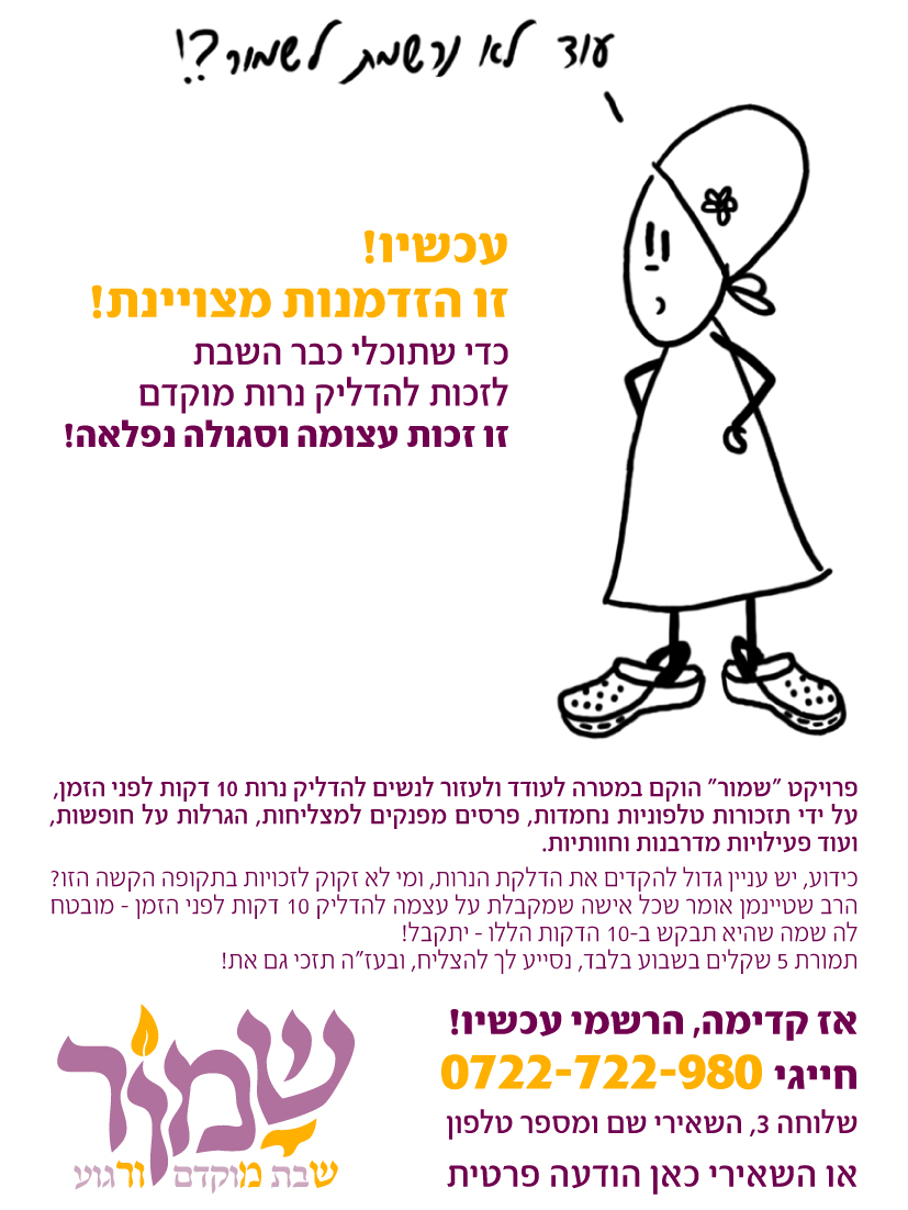 דבר ראשון בשביל לזכות עוד ועוד נשים שיצטרפו לתכנית ויזכו לקבל על עצמן להדליק מוקדם ורגוע.