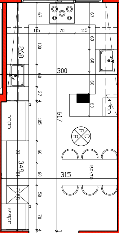 אם נישאר בחלוקה החדה בין אזור העבודה לאזור האוכל (וכולל התחימה של השטחים על ידי האי הקטן), גם אז לדעתך השטח לא מנוצל מספיק נכון ?