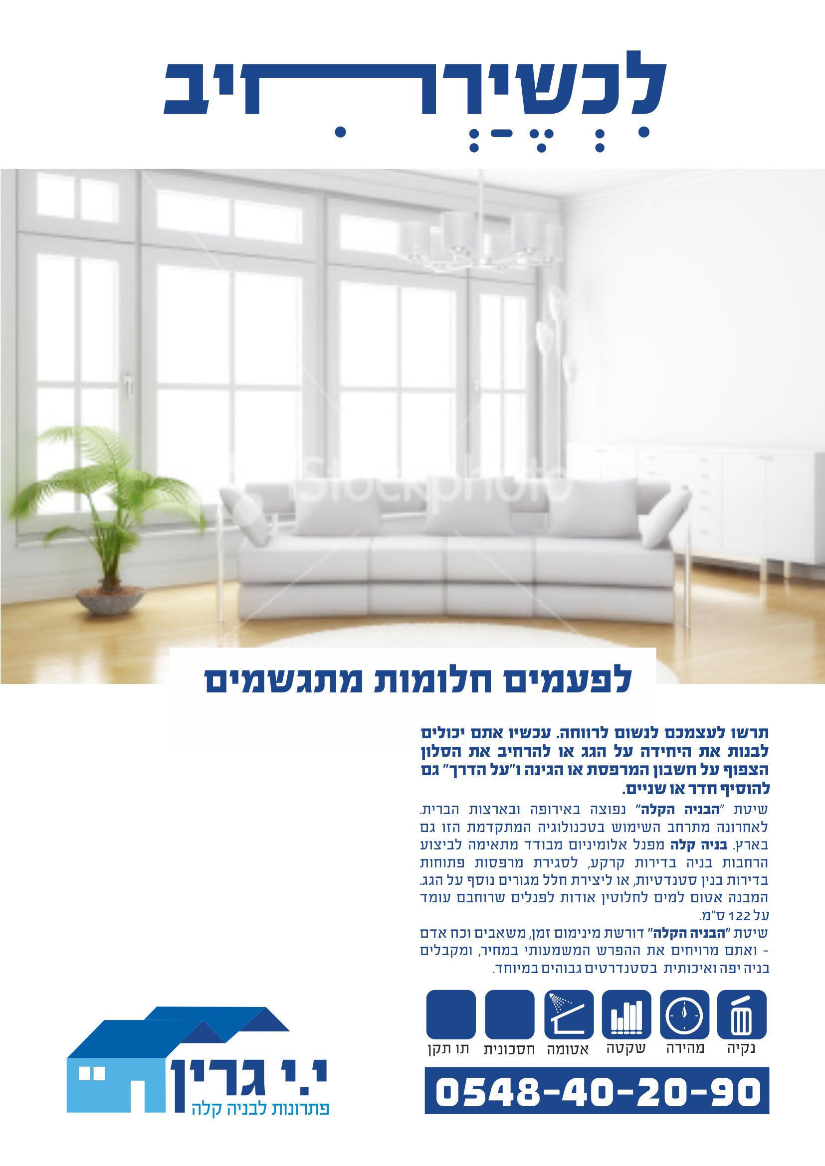 או: 14 יום 30,000 ש"ח 50 מ"ר נוספים בבית שלכם