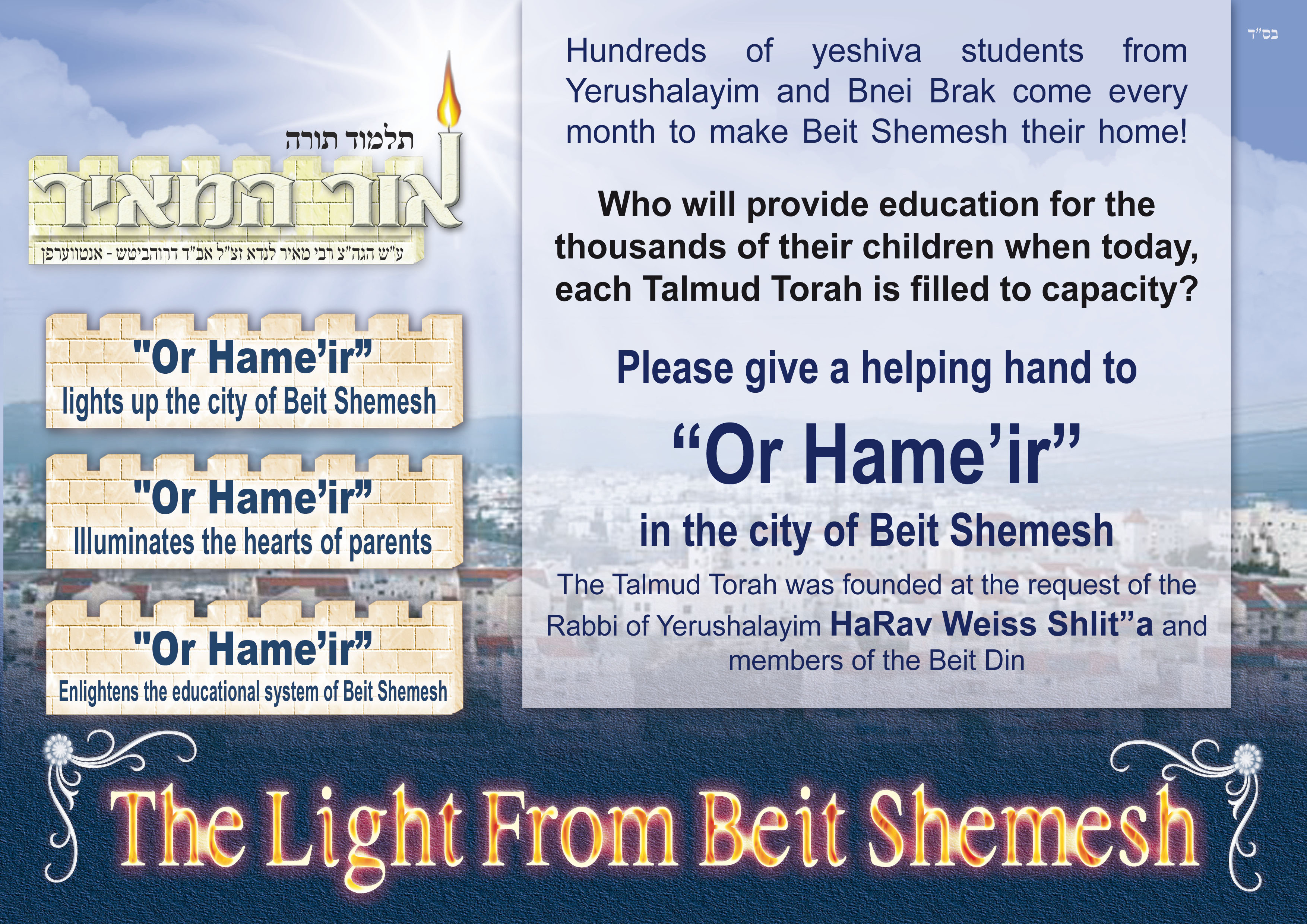 הראיון פשוט הוא מביע את מה שהמוסד אמור לומר שהוא מאיר את העיר בתורתם של תשב"ר והאם אפשר לשמוע חוו"ד