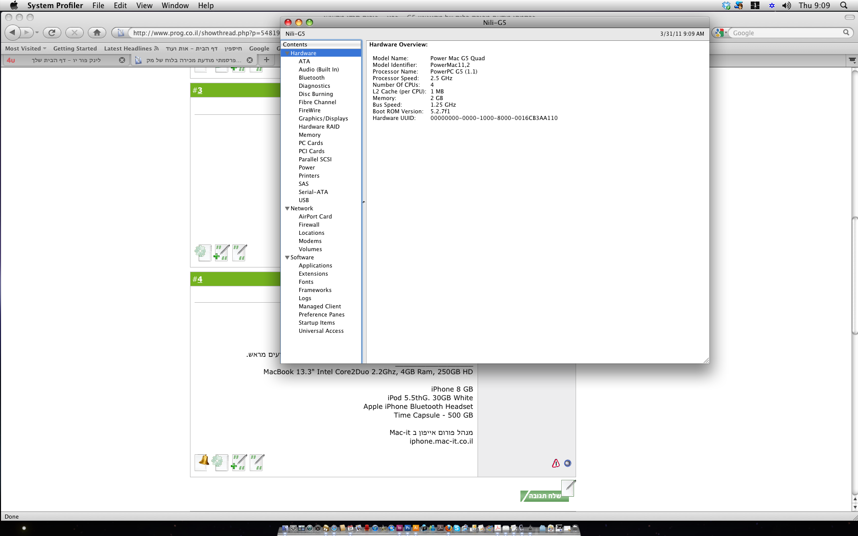 Mac פרסמתי מודעת מכירה בלוח של מקינטוש G5
