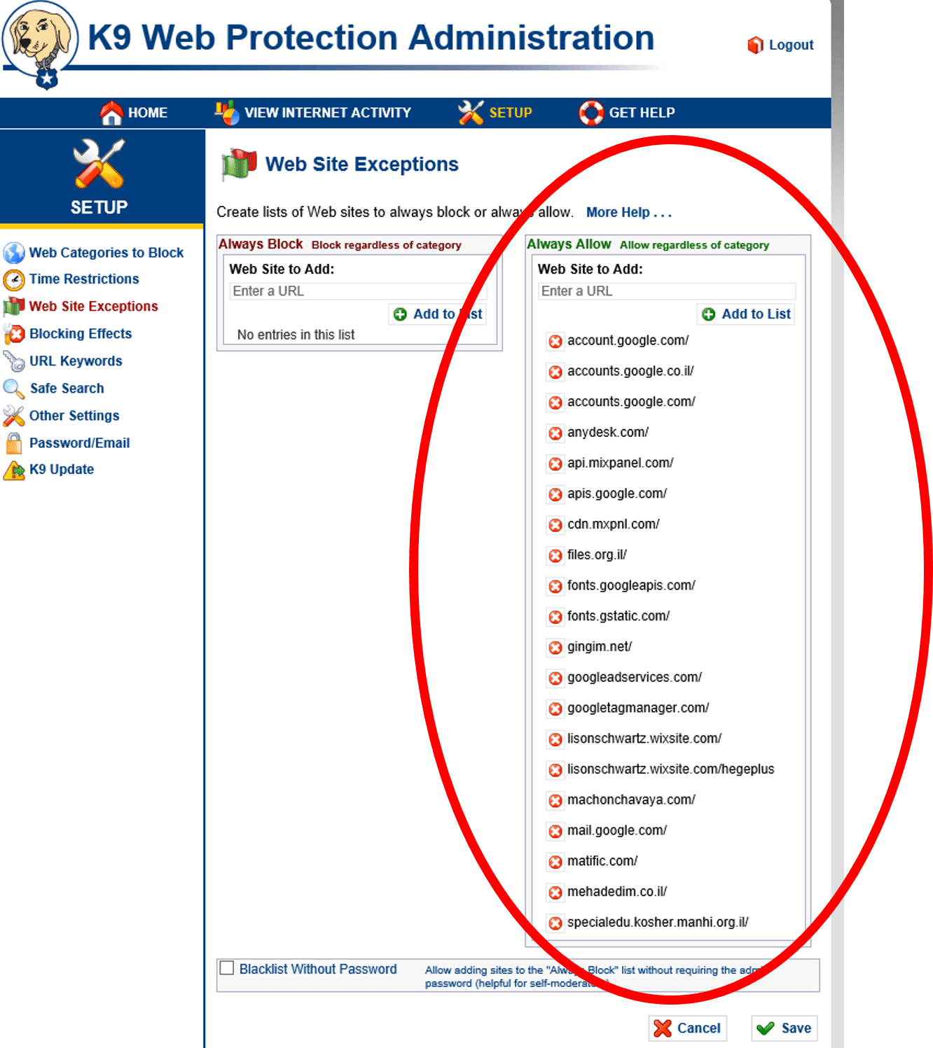 אילו כתובות URL צריך לשים בקטגוריה של האתרים שפתוחים תמיד?