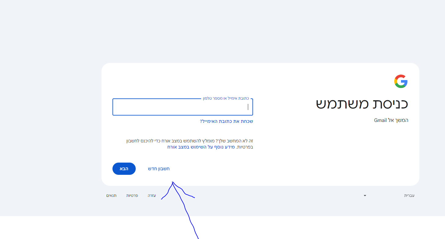 4. ואז נפתח אפשרות לכתוב כתובת מייל ומתחת יש כיתוב "חשבון חדש" ולהתקדם. לאיזה שימוש ועוש