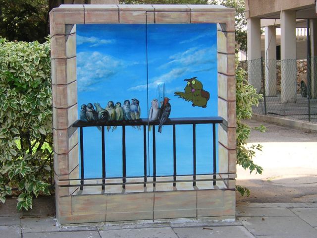 יכול להיות שראיתי את זה במקום אחר. רק לא זוכרת איפה. סליחה מכולכם. אולי אנסה להריץ חיפוש בגוגל חיפוש תמונות> ציורים על ארונות חשמל, ואולי גם יהיו תוצאות.