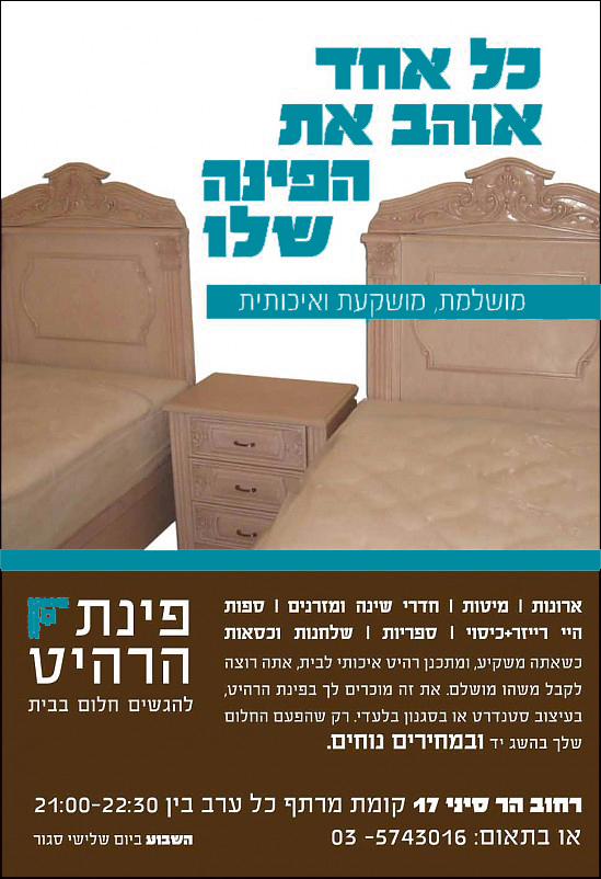הערת אגב: לגבי הפרסום הספציפי שהועלה כאן, יש רגישות יתר בהדפסה על גבי נייר עיתון לא איכותי, זאת מכיון שהצבע המכריע במודעה היא חום, וככל שהנייר פחות איכותי אזי הצבע המוביל של הנייר הוא ג"כ חום בהיר. כך שצבעי המודעה נבלעים ברק הנייר, שניהם חום.