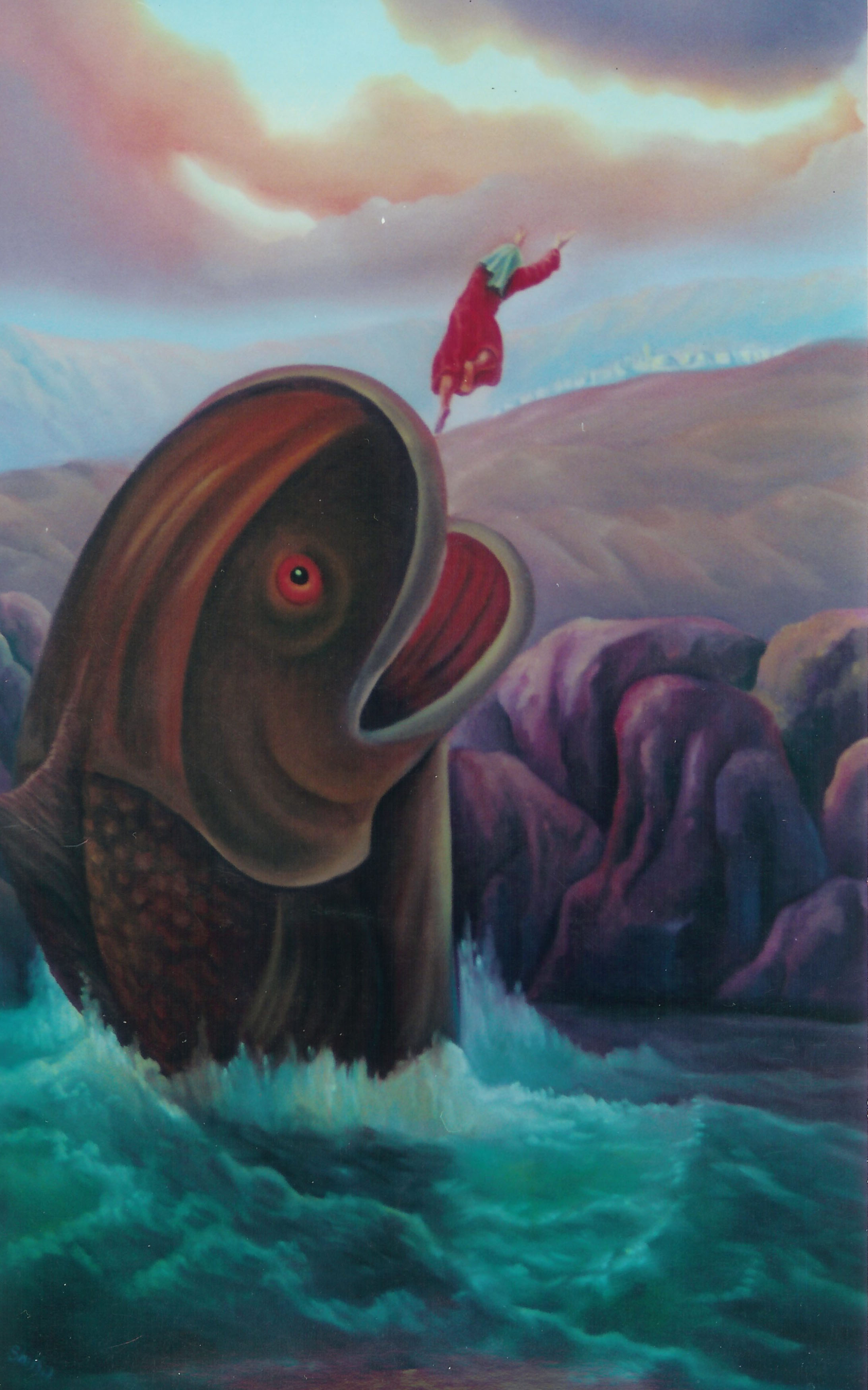 ציורים מדהימים. נראה שבציור הראשון שהדג מקיא את יונה (יורה אותו..) הסריקה לא משהו ולכן זה כהה קצת..