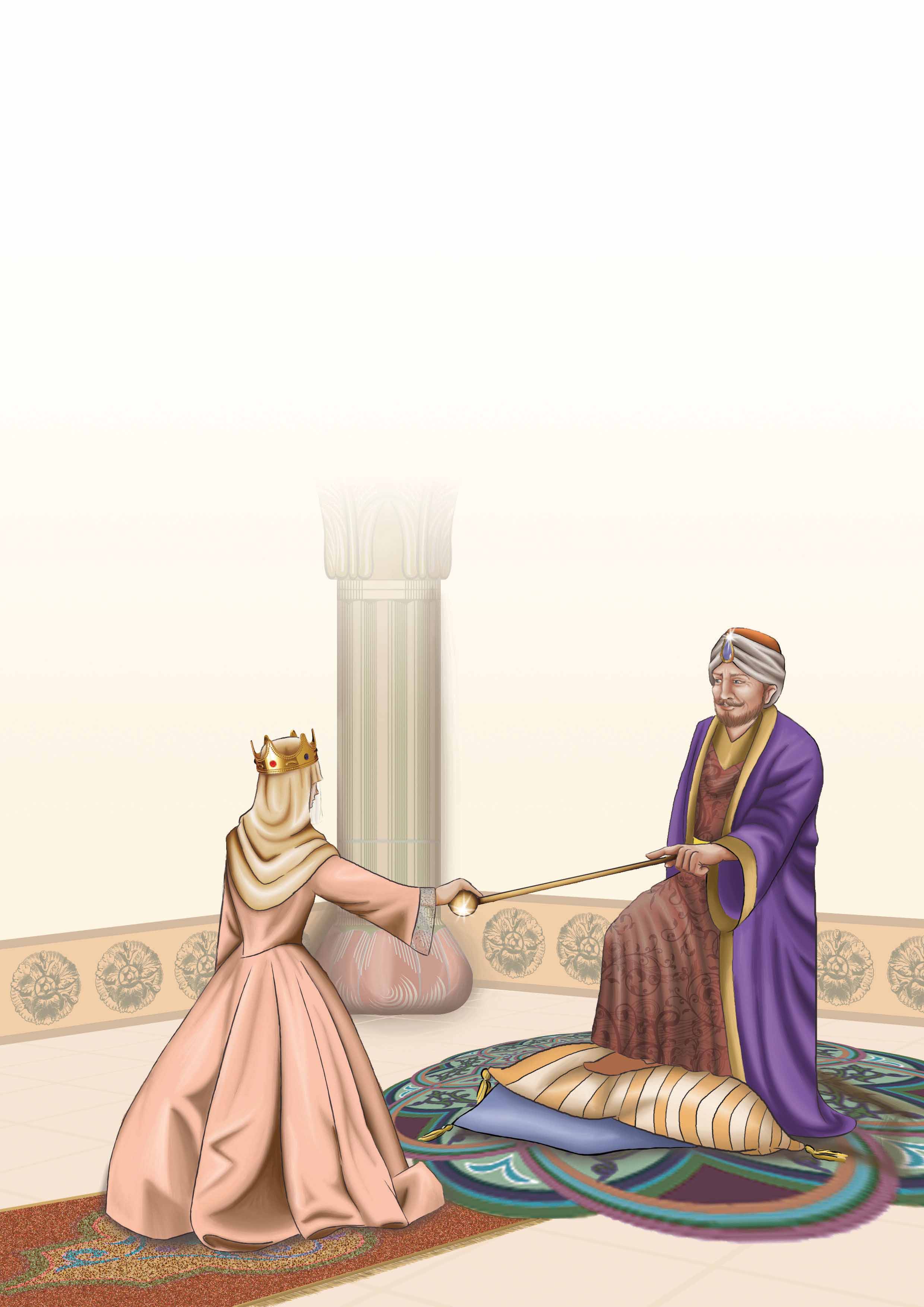 בתמונה הראשונה היא באה לפני המלך ולא עושה כלום כדי למצוא חן בעיניו ונשים בארצות ערב עד היום לבושות כך האם זה עדיין מפריע לך?