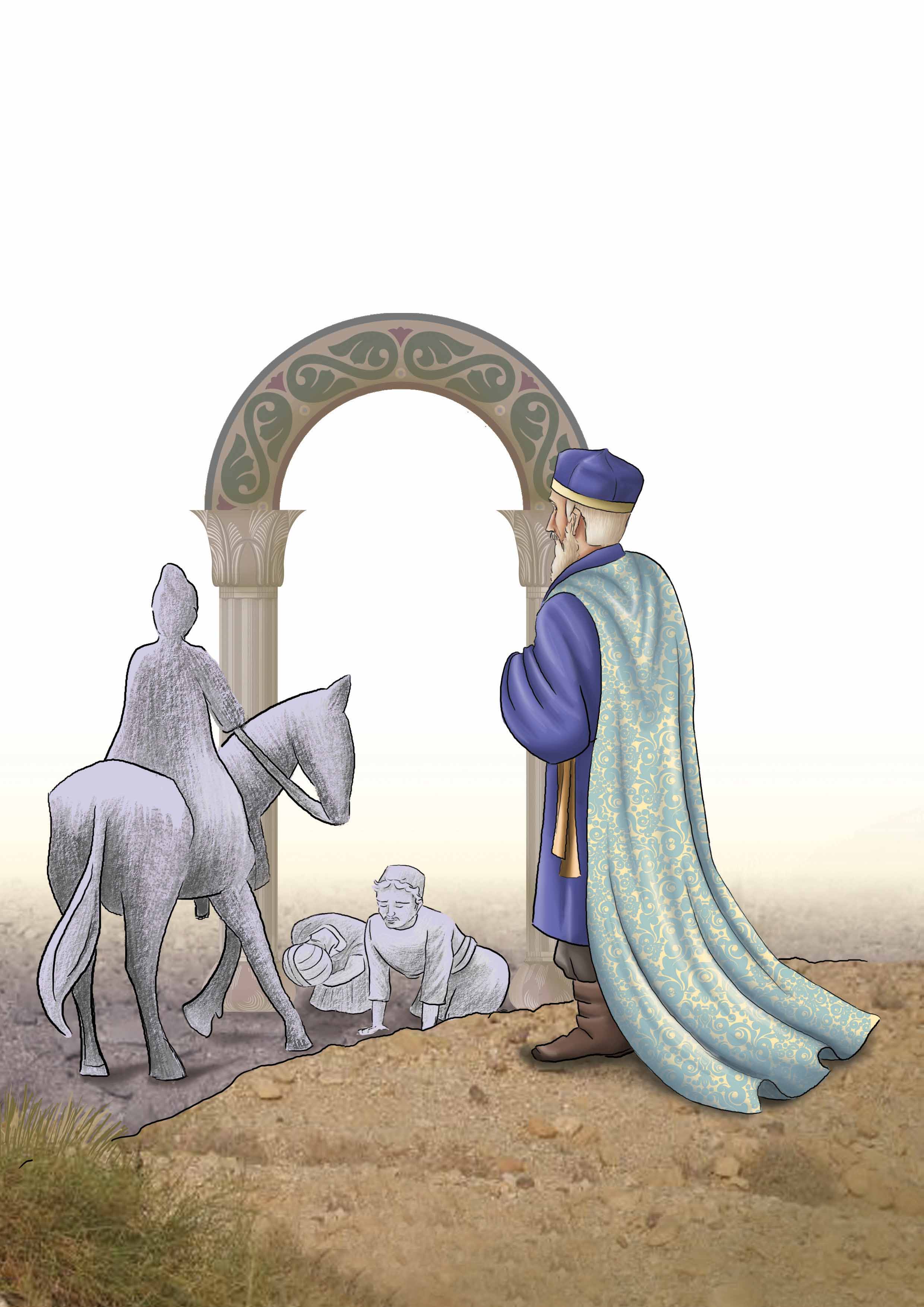 בציור השני, נראה יותר טוב ודרמטי לסיפור במגילה, נדמה לי שהיד של המלך יותר גדול מהראש?