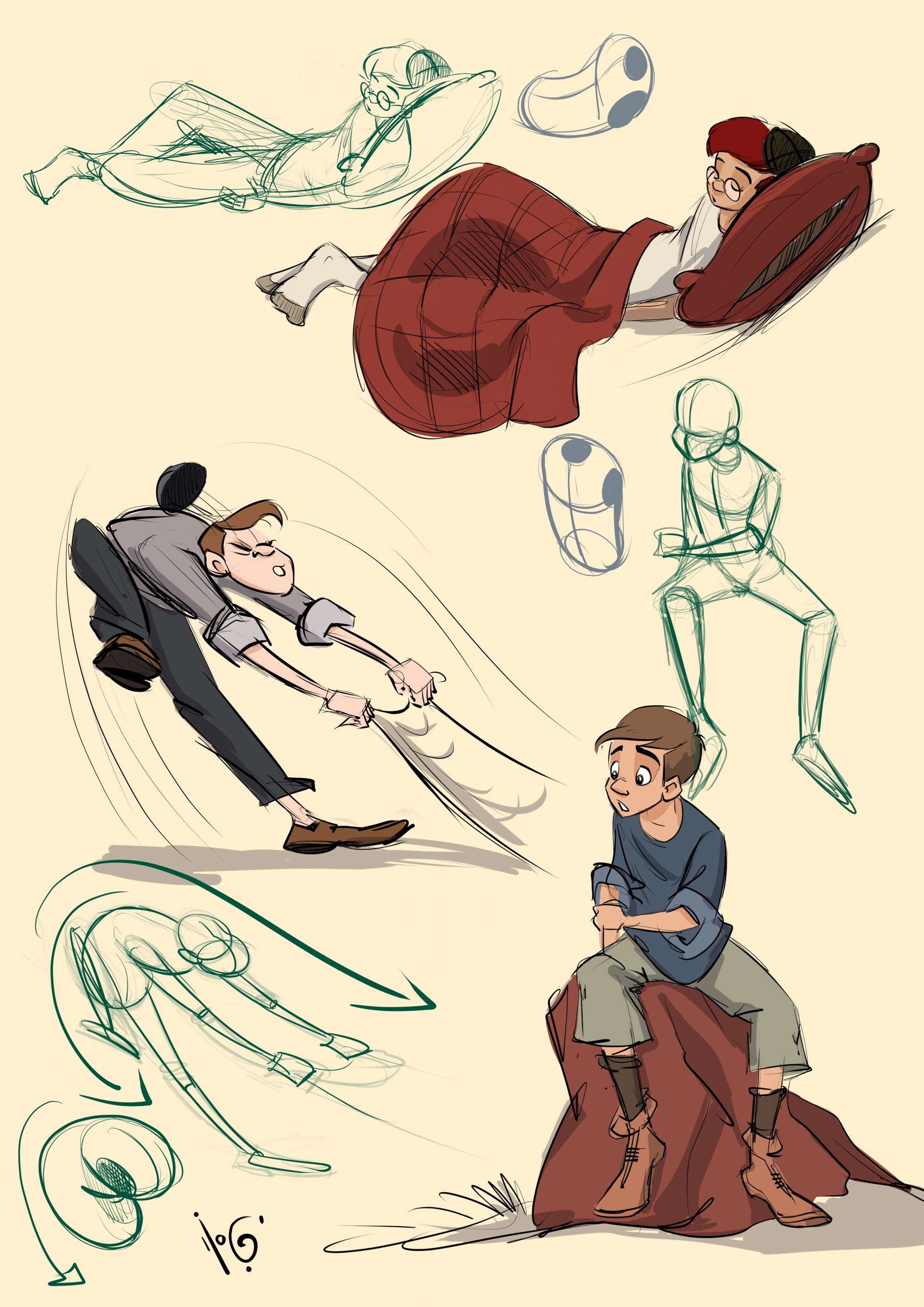 כוונת הצייר שלנו לא היתה לתאר תנועה מפינה ימנית תחתונה אל כיוון פינה שמאלית עליונה, אלא בדיוק להיפך, וכפי שרואים בעליל בתרשים הקווים והחצים שמתחת לציור המדובר.