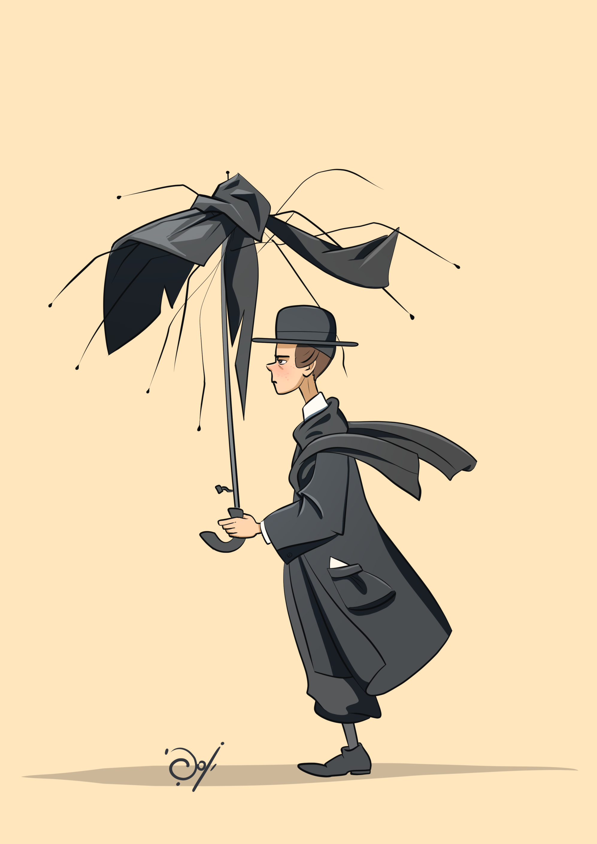 ציור של נער ומטריה בהשראה אמיתית (למי זה לא קרה;))