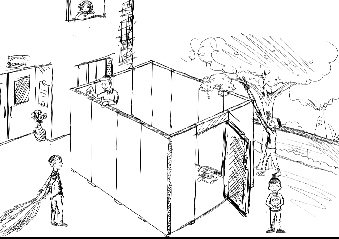ואם אתה רוצה עוד פרטים יכול ממש להוסיף שאחד מדופנות הסוכה יהיה חסר, (אחד מתוך הארבעה במקום בו הילד בונה)