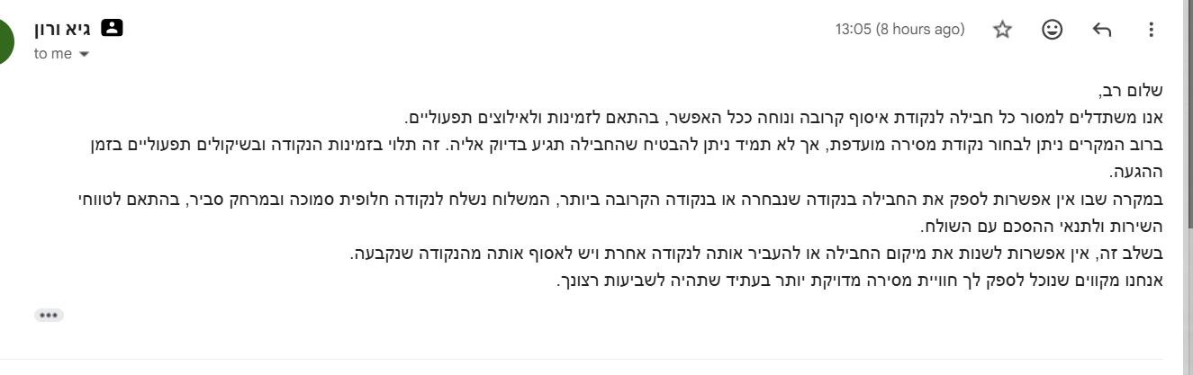 '@ גיא ורון' לא כתב שום סיבה למה הנקודת מסירה במודיעין עילית מושבתת!