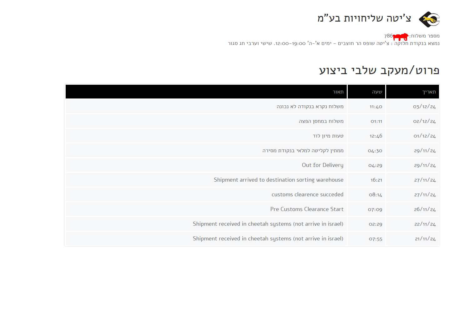 תודה על המידע, לא ראיתי מייל כזה, אבל זה מוזר שיש מספר מדף בצ'יטה אחרי שהם אמרו שלא...יש בצ'יטה מספר מדף!!!