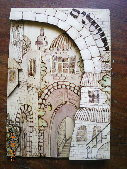את הציור על העץ אני לא מזהה. מזה צביעה או צריבה או שניהם?