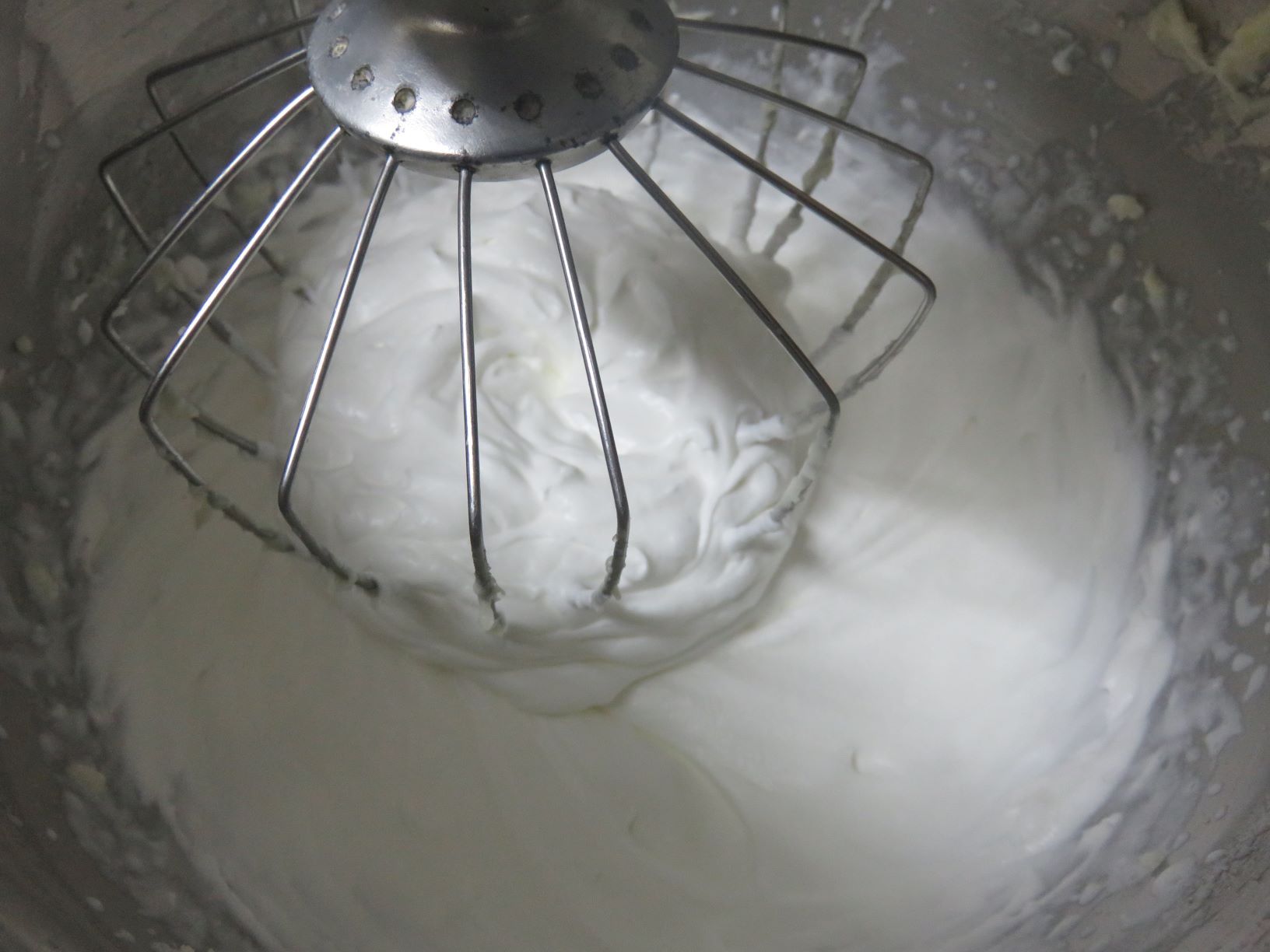 5. מבלי לשטוף את הקערה, מניחים בה מיכל שמנת מתוקה (קרה מאד. אני מניחה אותה במקפיא כ20 דקות לפני ההקצפה) וכף אבקת סוכר ומקציפים על מהירות גבוהה לקצף יציב.