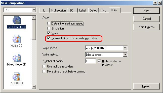האמת שלא צריך להגיע לזה , אם מוגדר שלא יעשה SESSION נוספים א"א יהיה להמשיך את הצריבה הנוכחית. (FINALIZE אומר שא"א לצרוב גם צריבה אחרת על הדיסק).