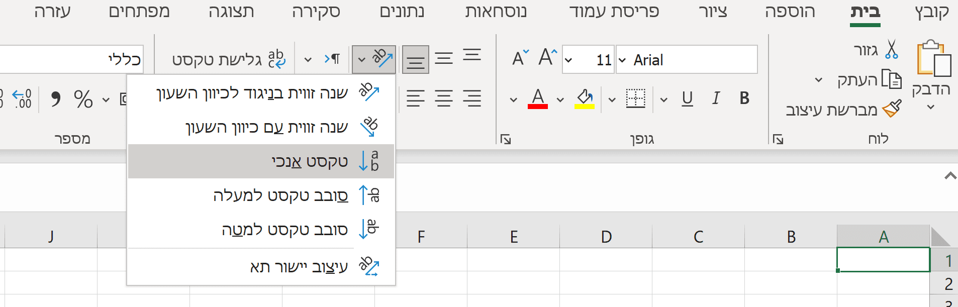 אופיס 365 צריך להפוך כיתוב שוכב לעומד באקסל איך עושים