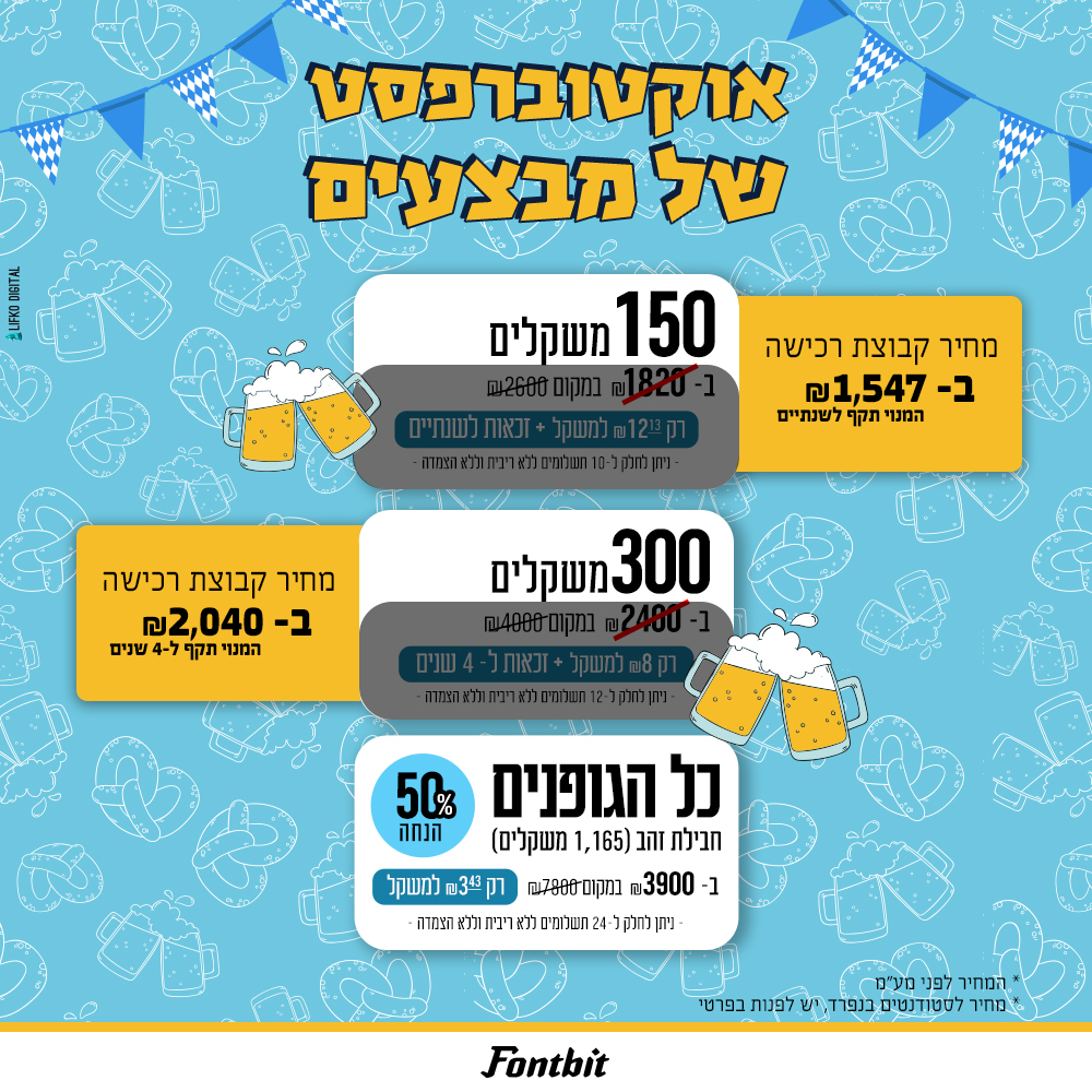 לאחר מאמצים רבים הצלחנו להשיג מחיר מטורף לפונטים מפונטביט.