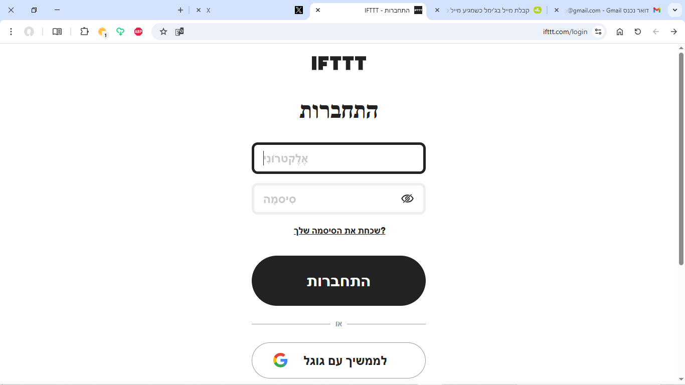 1. כנס לאתר IFTTT (https://ifttt.com/) וצור חשבון או התחבר.