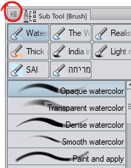 בצד שמאל בחלון המברשות יש 3 קווים ומשולש (תמונה מס' 1 מצורפת)