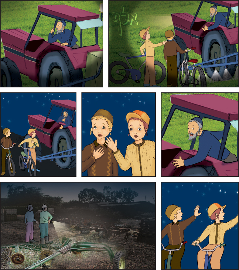 בפרקים הבאים העלילה מתרחשת בשעות ליל. הציור הוא בעייתי למדי, כי צלליות לבד זה לא מעניין. אשמח לשמוע הערות והארות