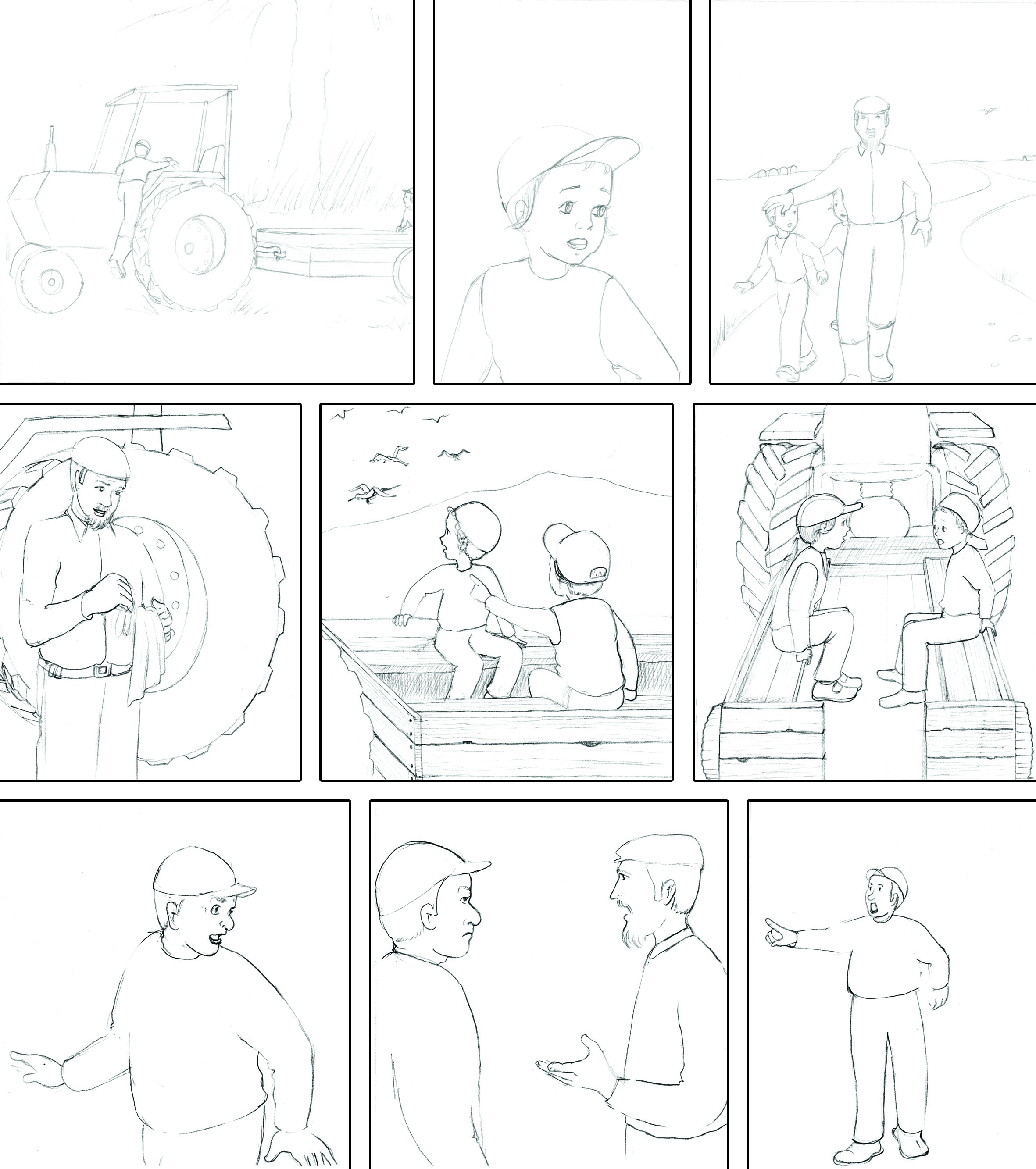 אם את יכולה להוסיף בשורה למטה קצת יותר אלמנטים, עפר, דשא, שמש, שקיעה, ציפור, ילדים, וכו' זה יוסיף לענין ולצבעוניות של הקומיקס.