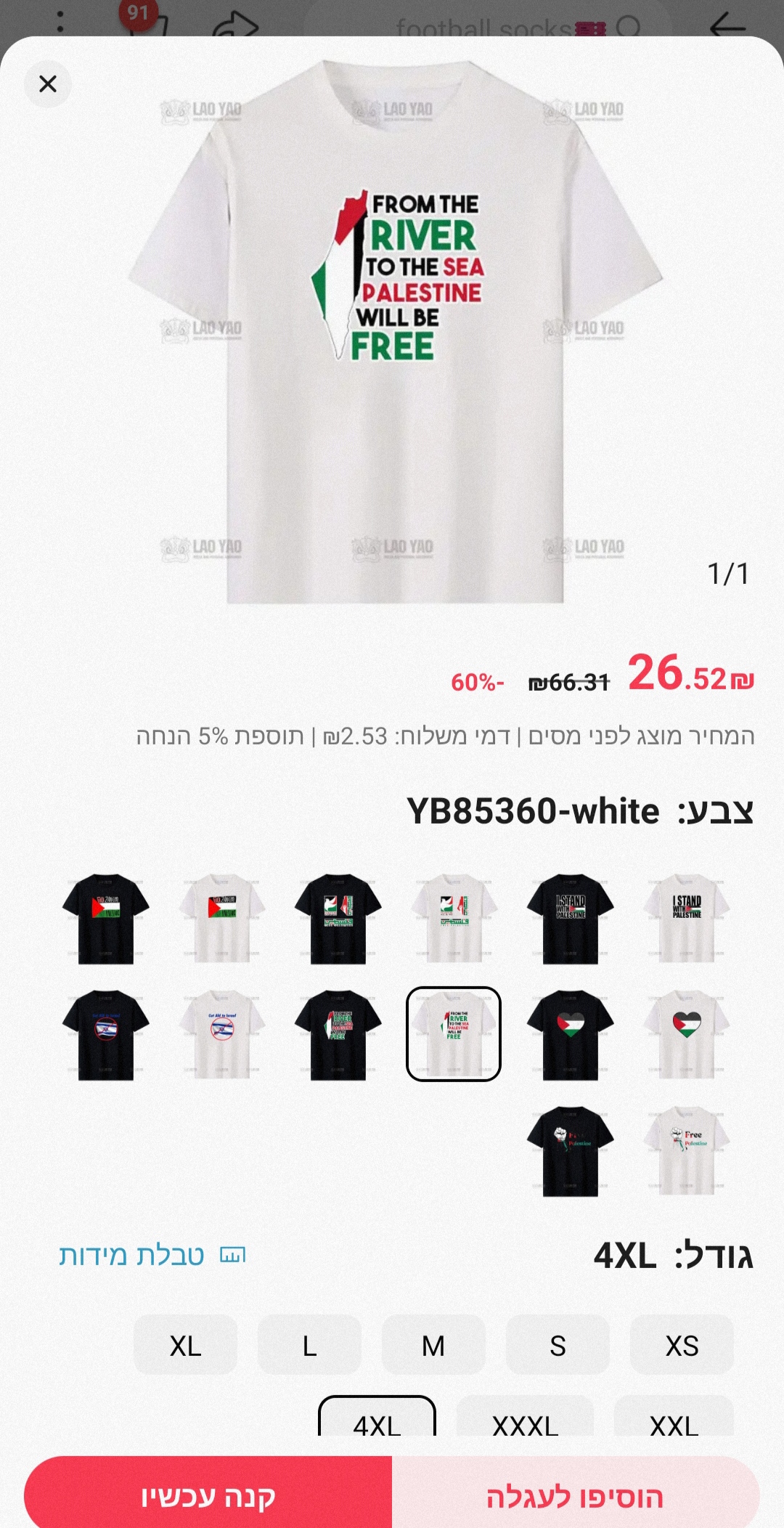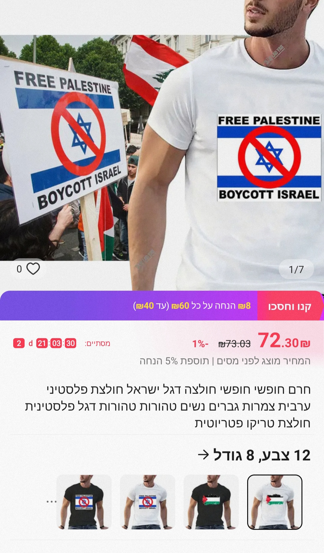 אתמול (שבת) פרסמו בעמוד האינסטגרם של "ישראל בידור" שהאתר השיק פריט חדש: דגל פלשתין. לאחר חיפוש מעמיק התגלה שאין אפשרות לרכוש באתר דגל ישראל, מה שסימל באופן חד משמעי את עמדתה של חברת האופנה. הידיעה התפשטה ועוררה סערה ברחבי הרשת, ובחברה החליטו להסיר את הפריט ולמחוק אותו לחלוטין מהאתר.