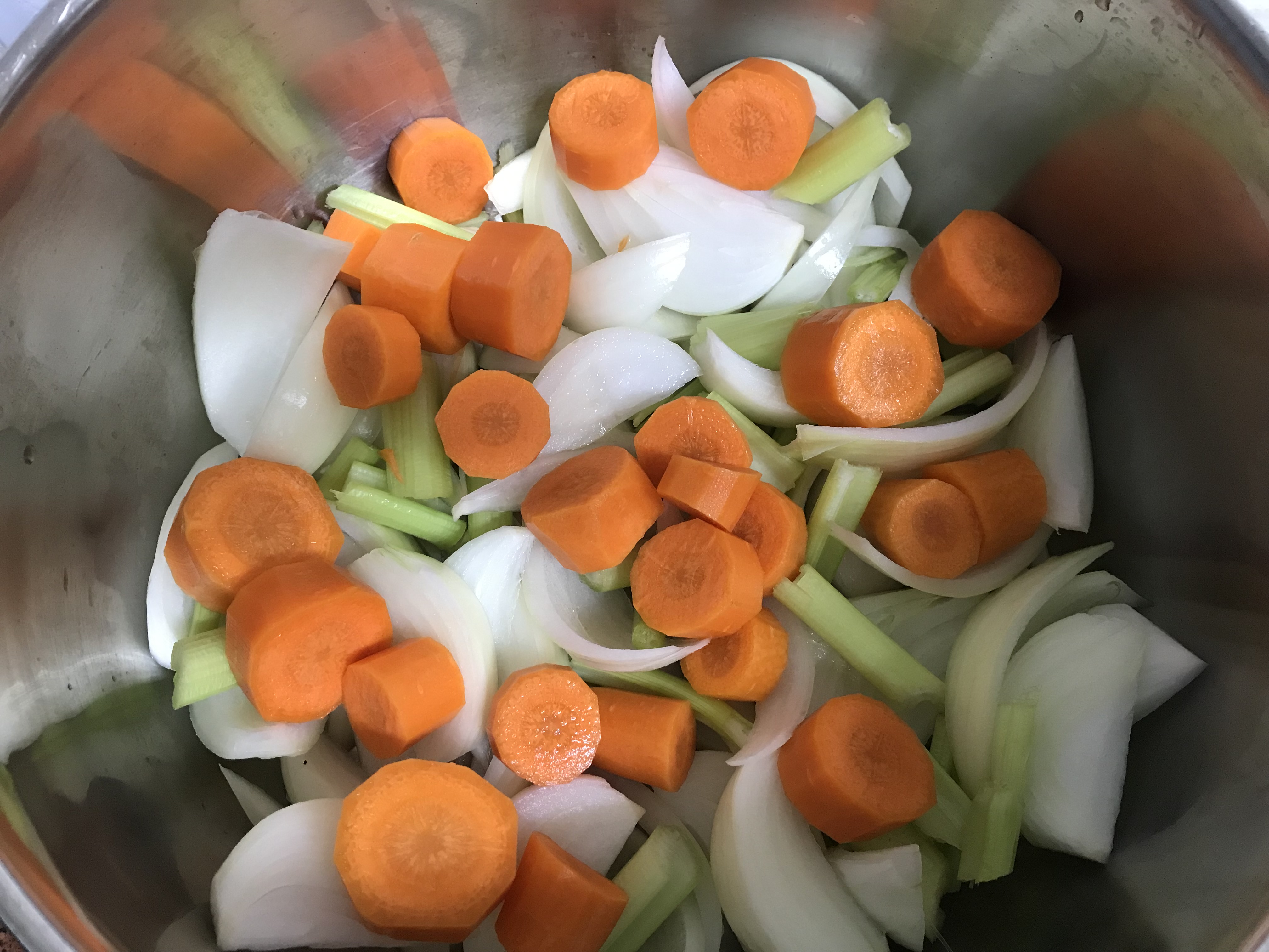 1. מניחים בסיר עמוק ורחב את הגזר, הבצל והסלרי עם שמן הזית