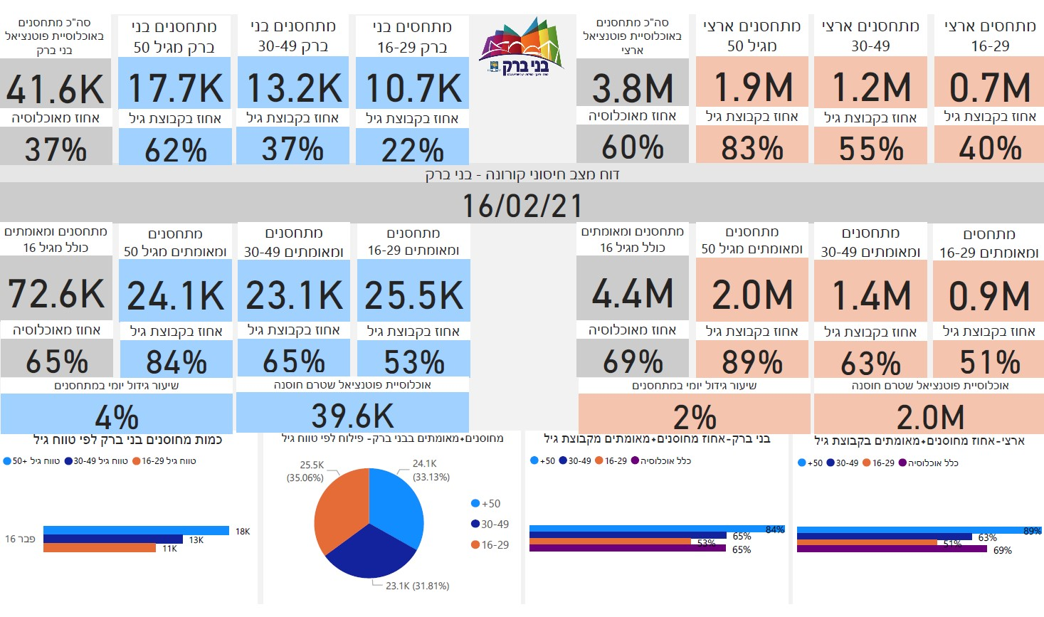 יש למישהו קישור איפה אפשר לראות אחוזי מתחסנים לפי גיל ויישוב? (ביחד, לא כמו בלוח הבקרה שזה בנפרד, כלומר גיל לפי כלל ארצי). נדמה לי שהעלו לפה בעבר. תודה.