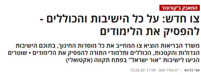 גבי הפעלת ת"ת, בהנתן העובדה שכמות הפייק ניוז חוגגת, מי שמע במפורש מגדו"י לקיים את הלימודים כסדרם??