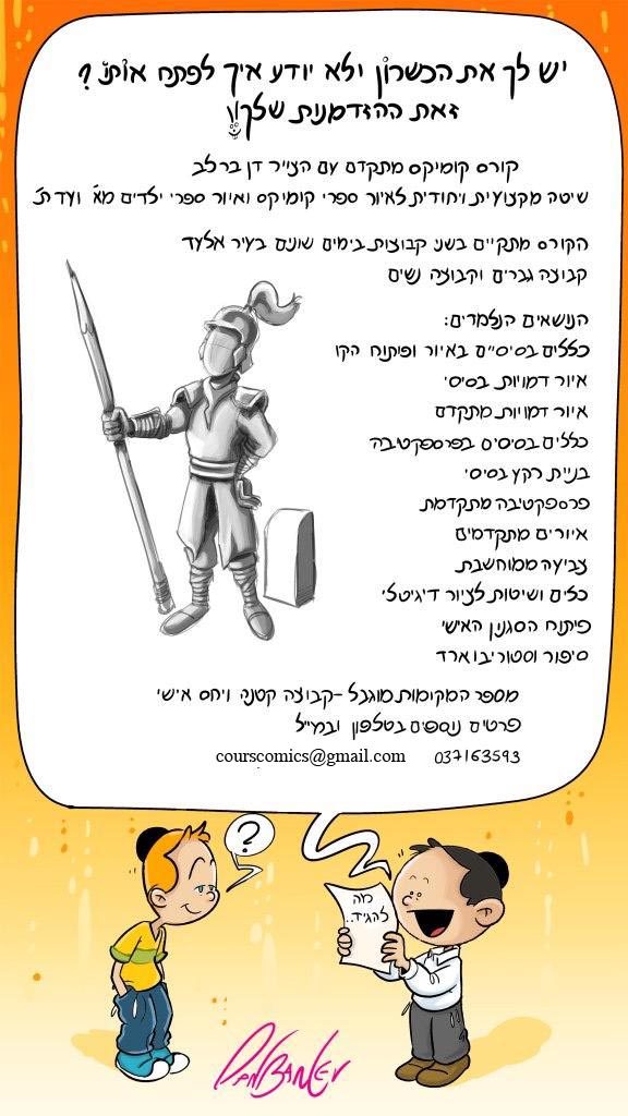 קורס לציור קומיקס מתקדם ינתן באלעד החל מתחילת שנת הלימודים הבאה