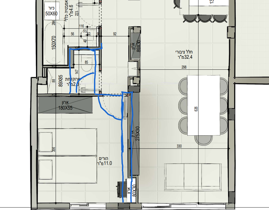 החסרון באופצייה הזו היא שאין לסלון קו ישר ואחיד, כי בנישה כשמתרחב יהיה 20 סמ ורק לאחר מכן הארון ספרים