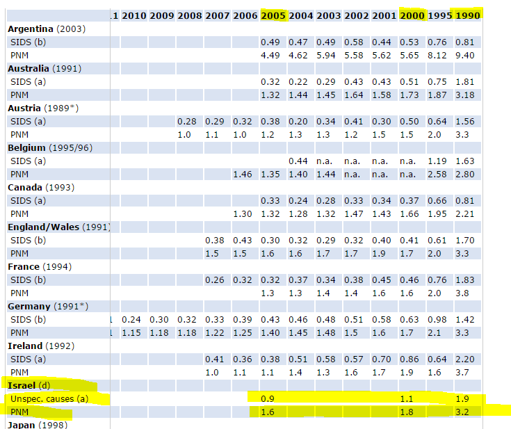 לגבי חברותה של ד"ר שץ בארגון העולמי: זה מרשים מאד. אבל אפילו לפי נתוני הארגון העולמי, חלה ירידה חדה במספר מקרי הSIDS בישראל מ-1990 ועד 2009. למה הד"ר אומרת לתקשורת כל הזמן שבישראל אין ירידה?