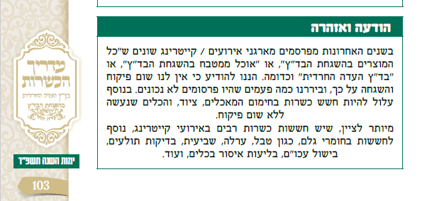 למען הסדר באשכול זה נעלה עדכונים בנושא כשרות.